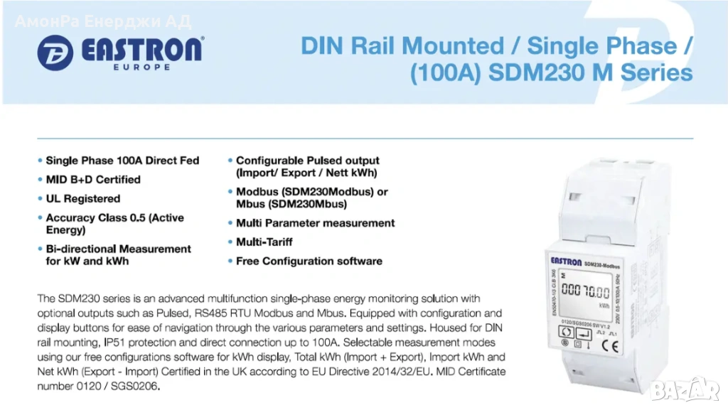 DEYE SDM230-Modbus – Moнофазен смарт метър