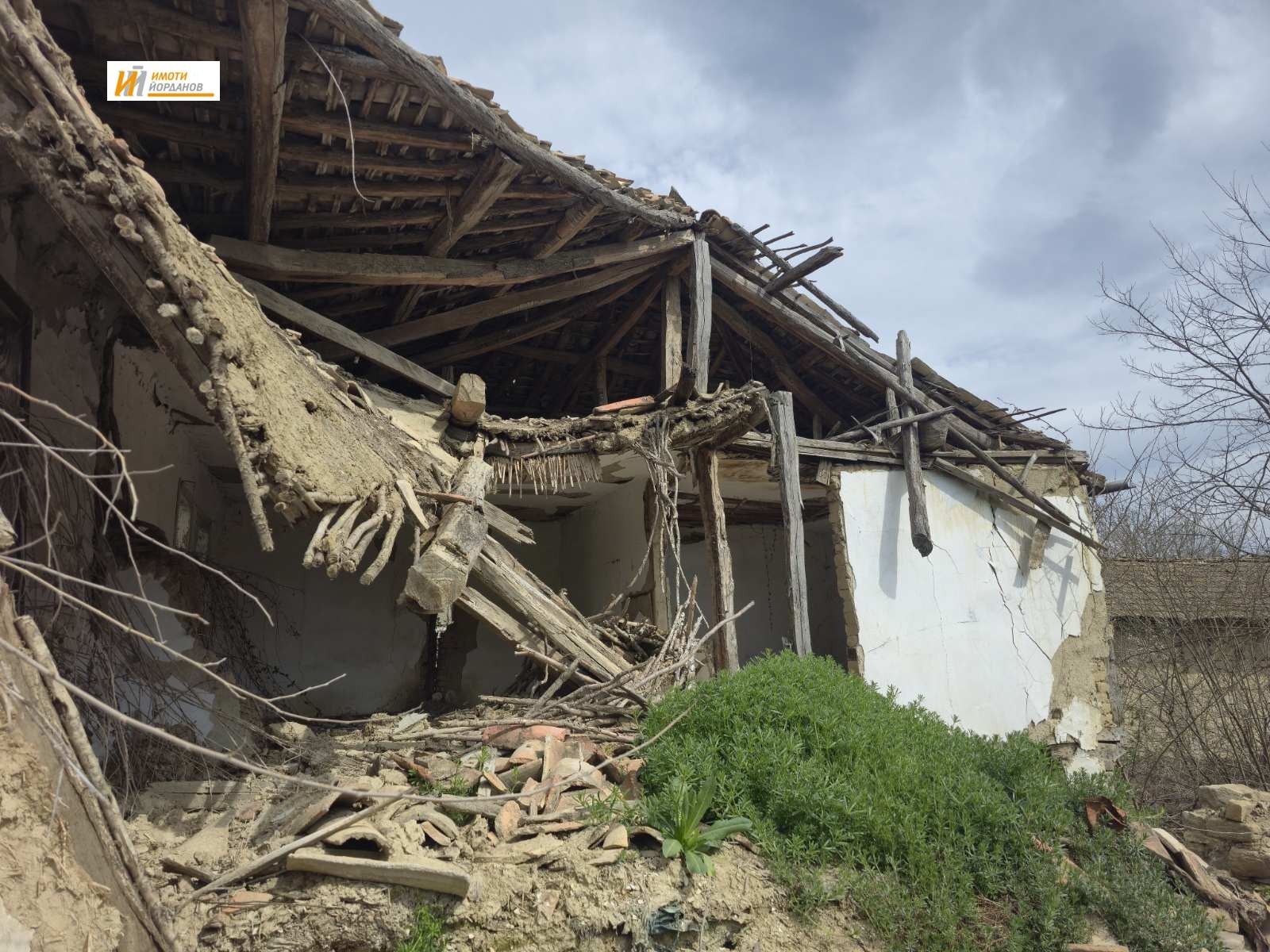 Предлагаме полусъборена къща с дворно място 1050кв.м. в близост до центъра на с. Кесарево. В документа за собственост е описана къща, пристройка и стопански сгради, на място има само основи от къщата, имота е за събаряне. ID3143