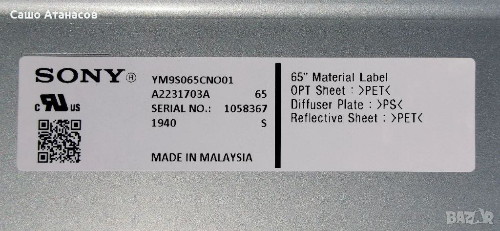 Модули от телевизор SONY KD-65XG8196 със счупена матрица (панел YM9S065CNO01 )