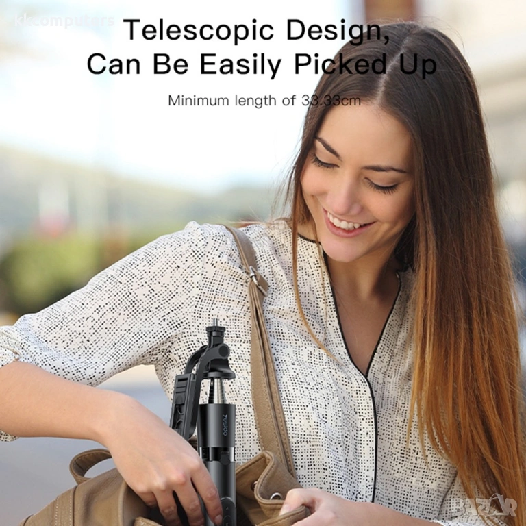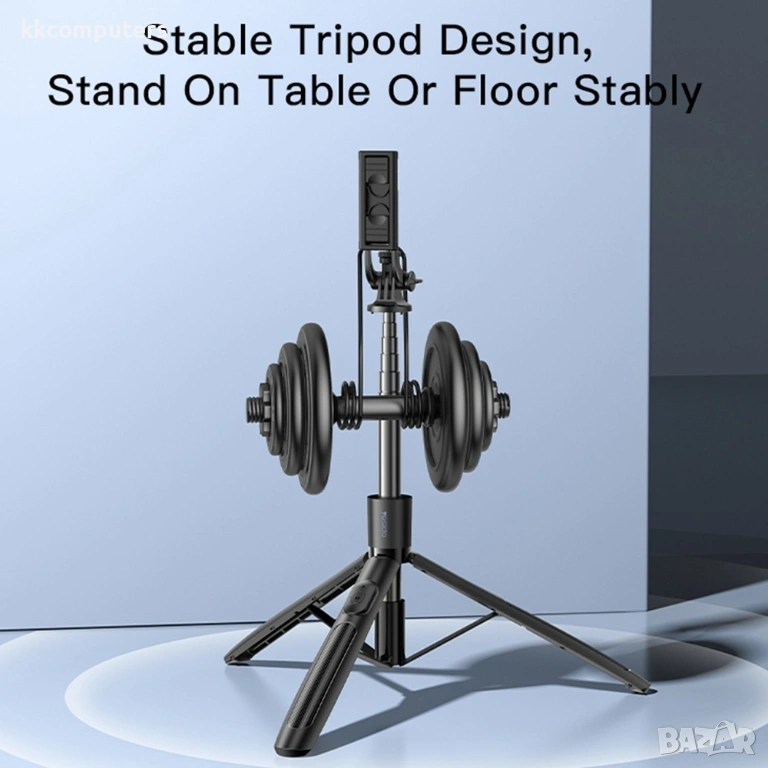 Триподът е компактен и лесен за пренасяне, а повърхността е устойчива на замърсяване и приплъзване. Подходящ е за снимки, видеа, лайв стрийминг, влогове и ежедневна употреба.