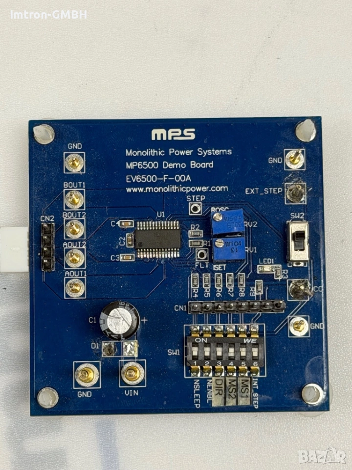 EV6500-F-00A е платка за оценка на MP6500GF, драйвер за стъпков двигател с вграден микростъпков транслатор.