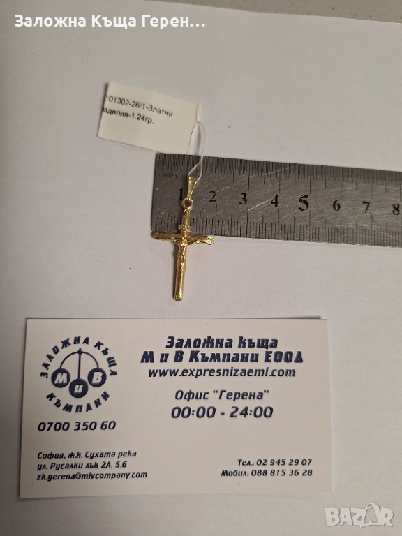 Златна Висулка Кръст - 1,24гр. - 14к.