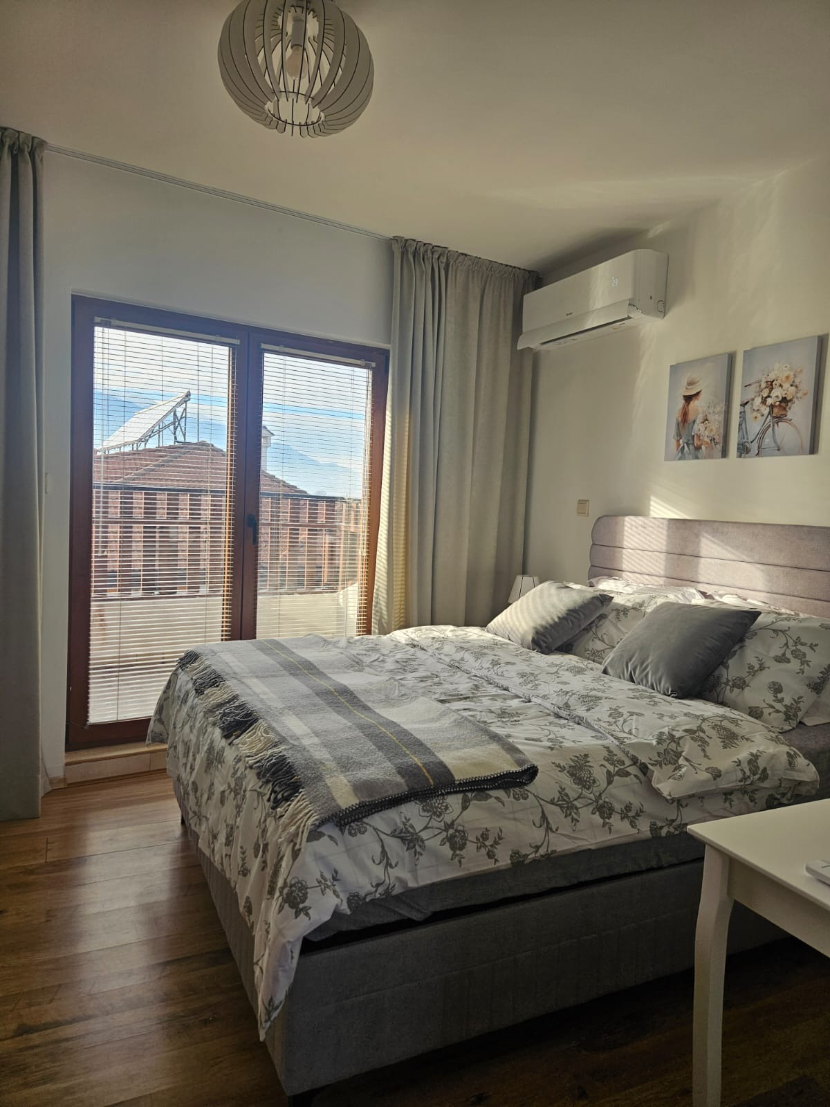 Отоплението е с климатици. Жилището е на пешеходно разстояние от ски лифта, търговската улица, архитектурни и исторически забележителности. Безплатен паркинг пред сградата. В момента се отдава като AIRBNB и е с отличен рейтинг.