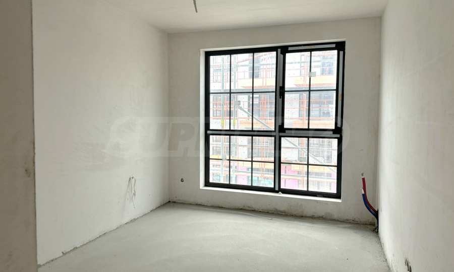 Жилището се предлага на гипсова мазилка, подове с циментова мазилка, вътрешно окабеляване и луксозни входни врати.