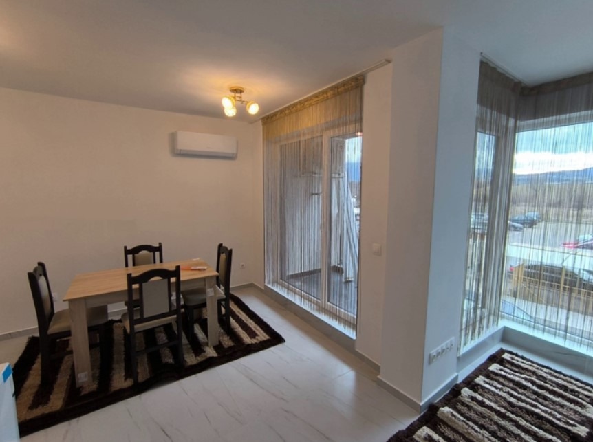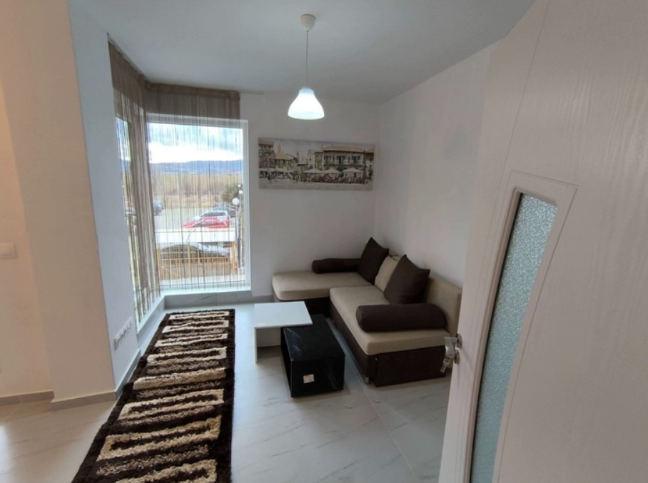 Имотът е обзаведен, с площ 55 кв.м, на 1-ви от 7 етажа в сграда с асансьор. Разпределението включва входно антре, хол с кухня и трапезария, спалня, баня с тоалетна и тераса.