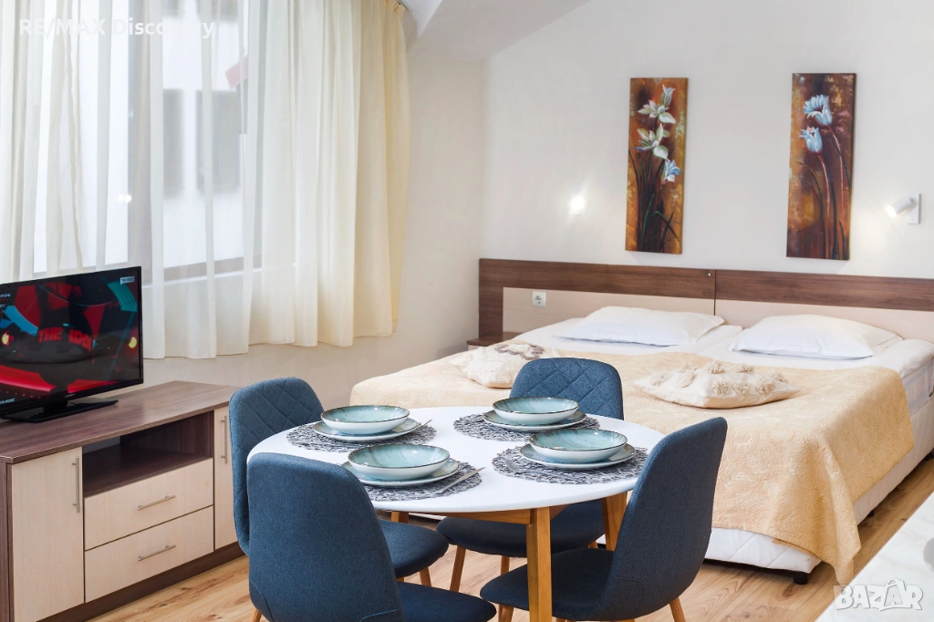 Студиото е просторено и предлага функционално разпределение, подходящо както за лична почивка, така и за бизнес чрез платформи като Airbnb и Booking. Интериорът е поддържан в класически, уютен стил.