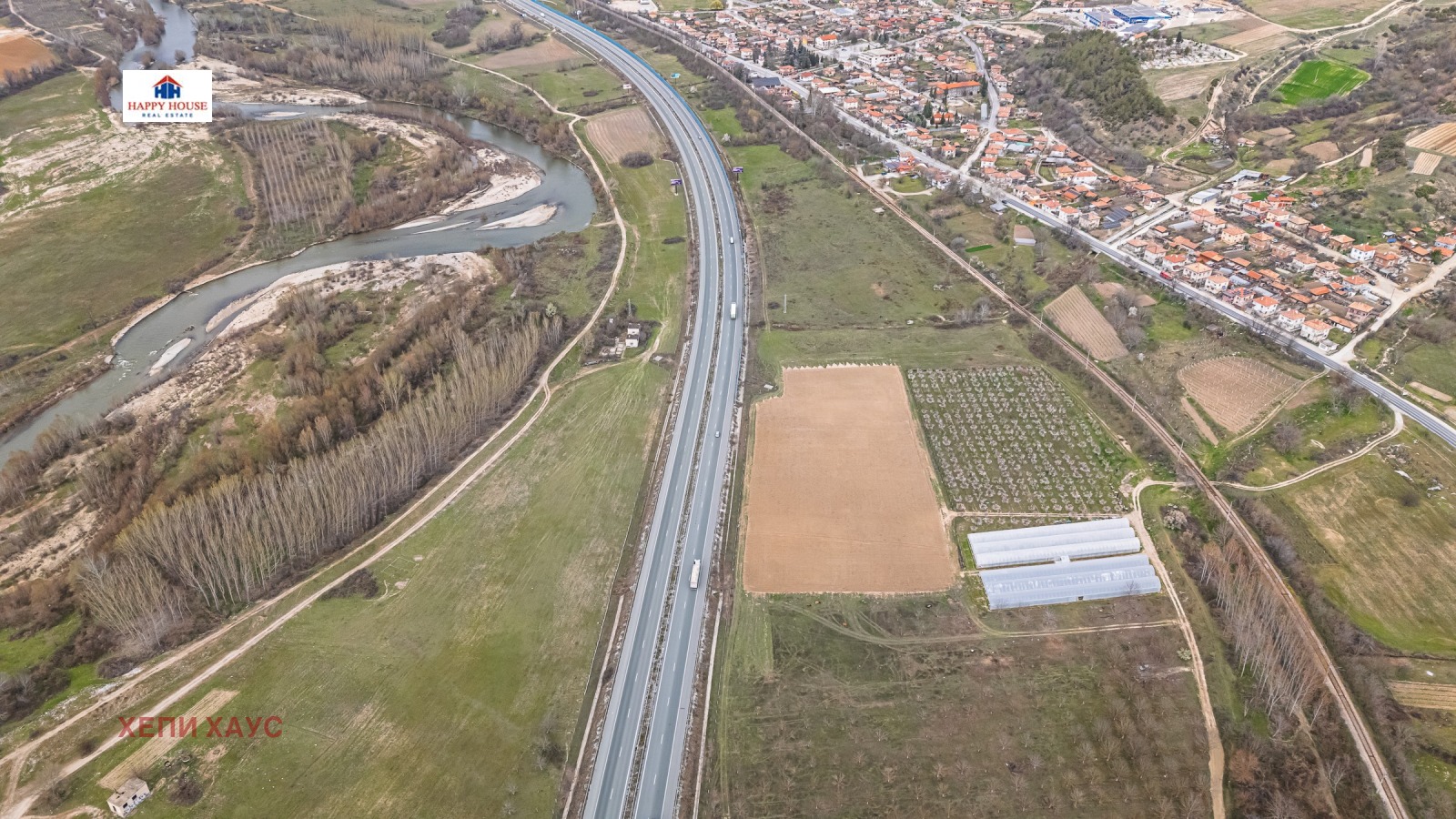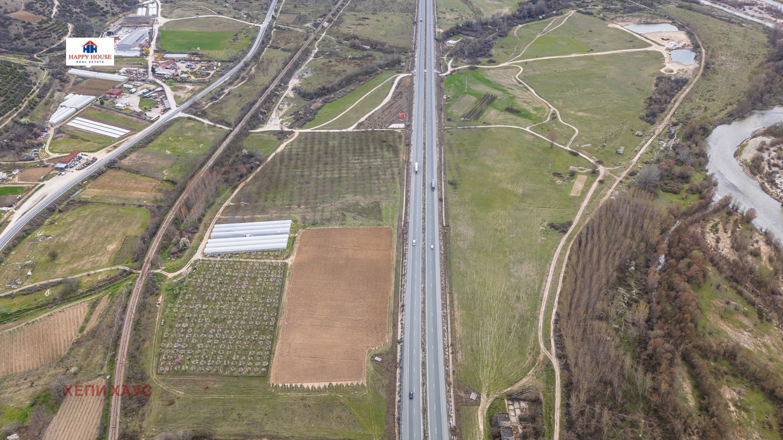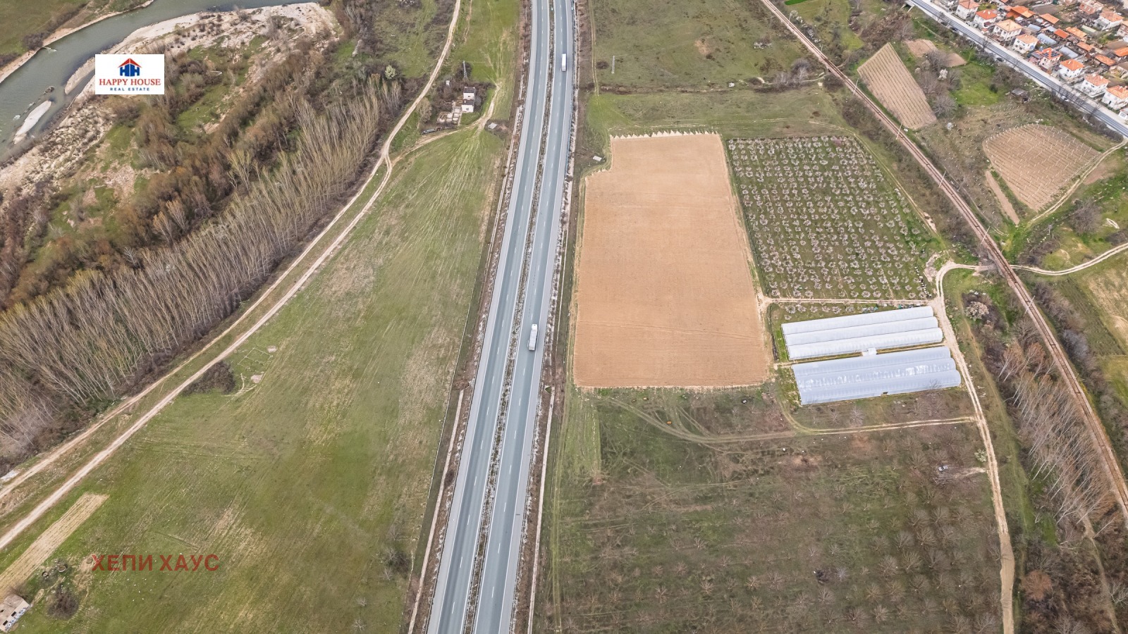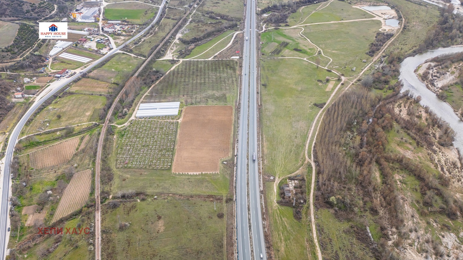 Хепи Хаус Недвижими Имоти продава изключително атрактивен имот на Автомагистрала Струма, ситуиран от двете страни на магистралата, на километър 131, в равнинен участък с голямо лице. Имотът е с огромен инвестиционен потенциал.
