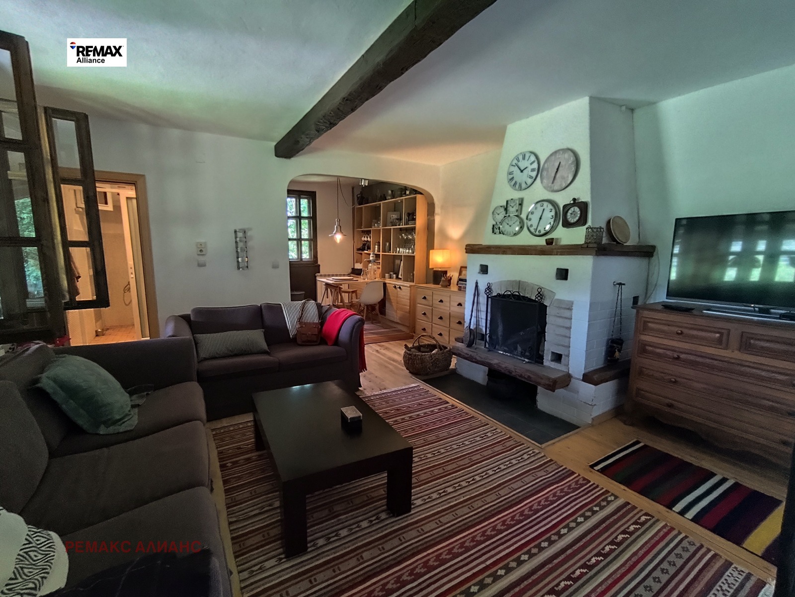 * Напълно обзаведена дневна с мека мебел и работеща камина
