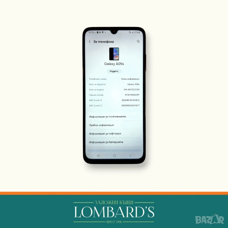 Samsung A05s 64GB, N: 535714, снимка 1 - Samsung - 54025263 Samsung A05s 64GB, N: 535714, снимка 2 - Samsung - 54025263 Samsung A05s 64GB, N: 535714, снимка 3 - Samsung - 54025263 1/3