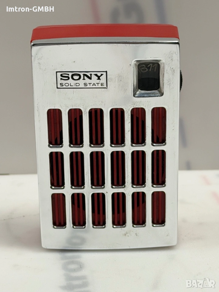 Винтидж преносимо AM радио Sony 2R-32 с шест транзистора / Хромирана предна част със слушалки.