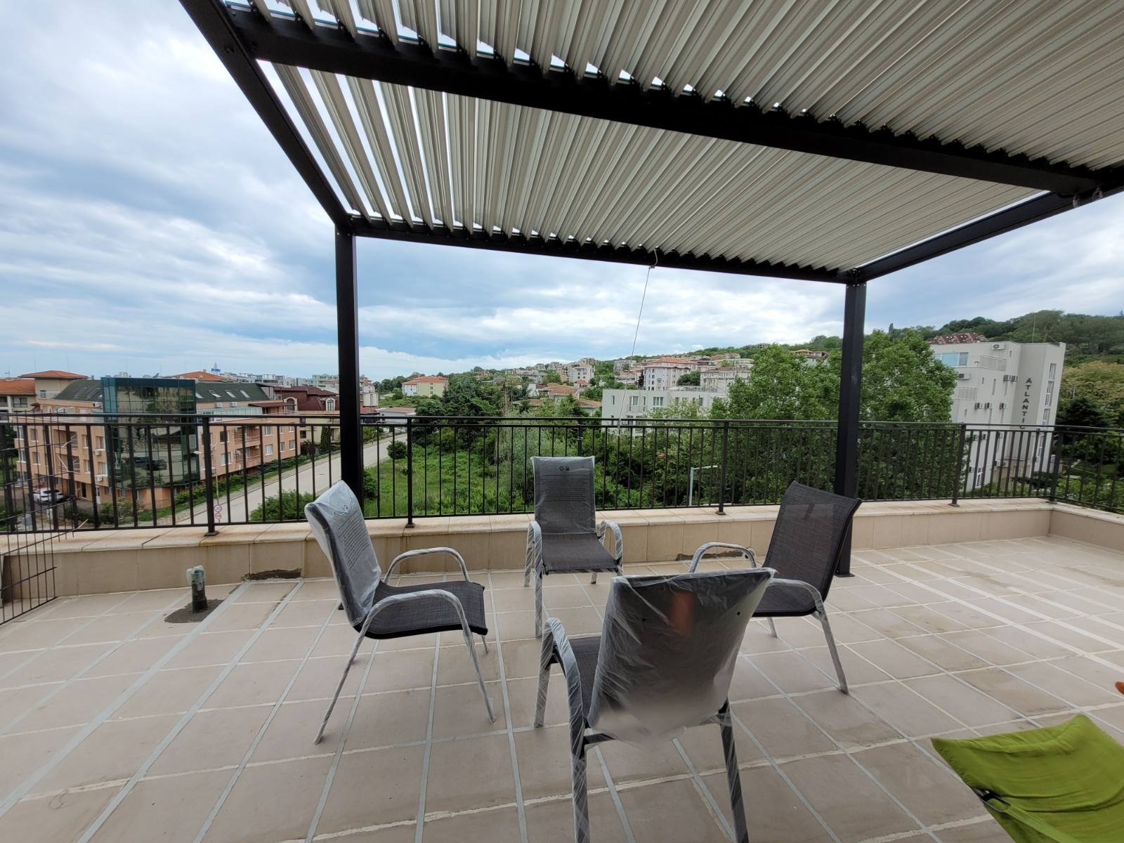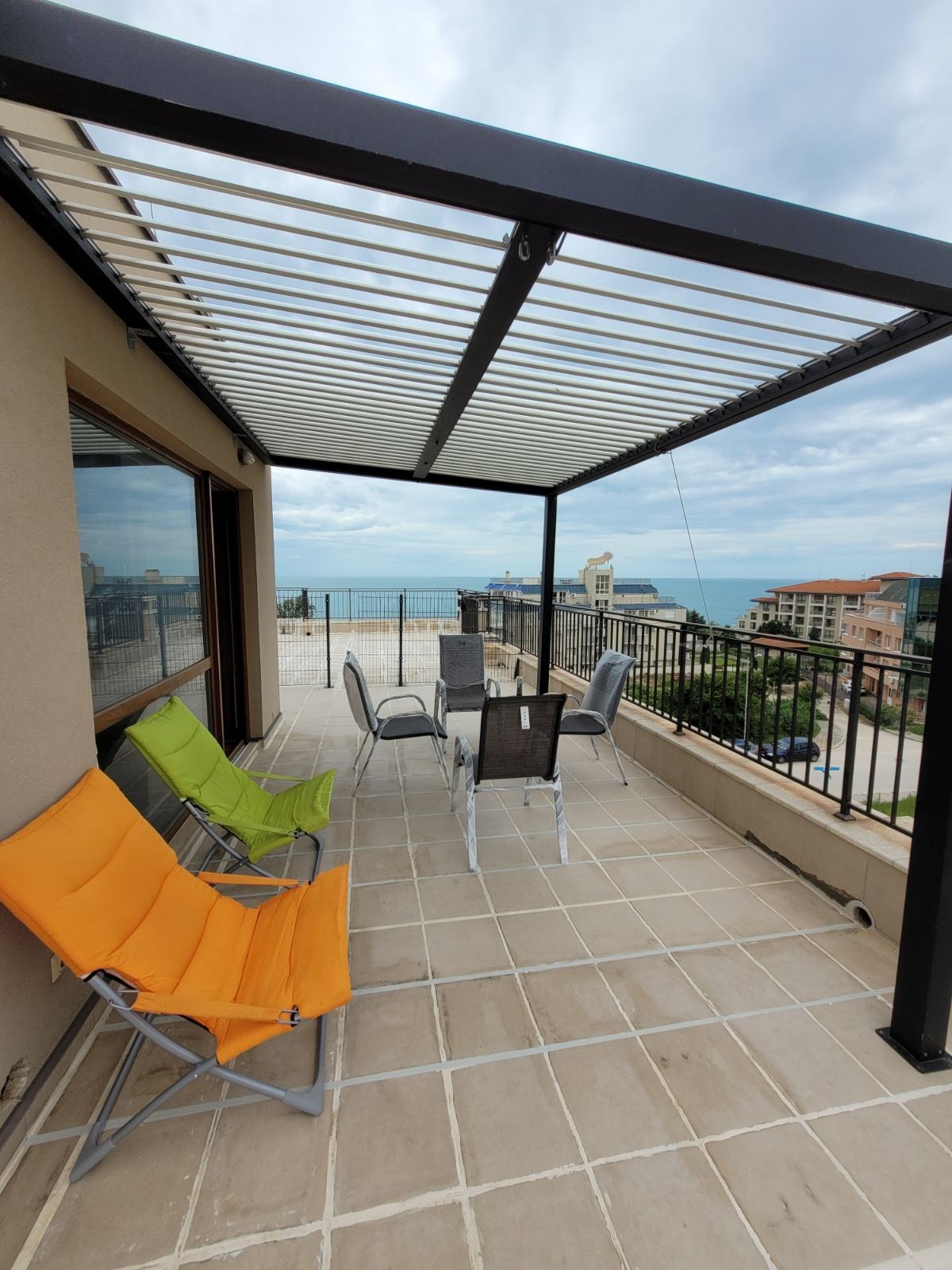 Разполага с голяма 67 кв. м веранда , идеална за релакс, сутрешно кафе или вечеря с гледка към морето.