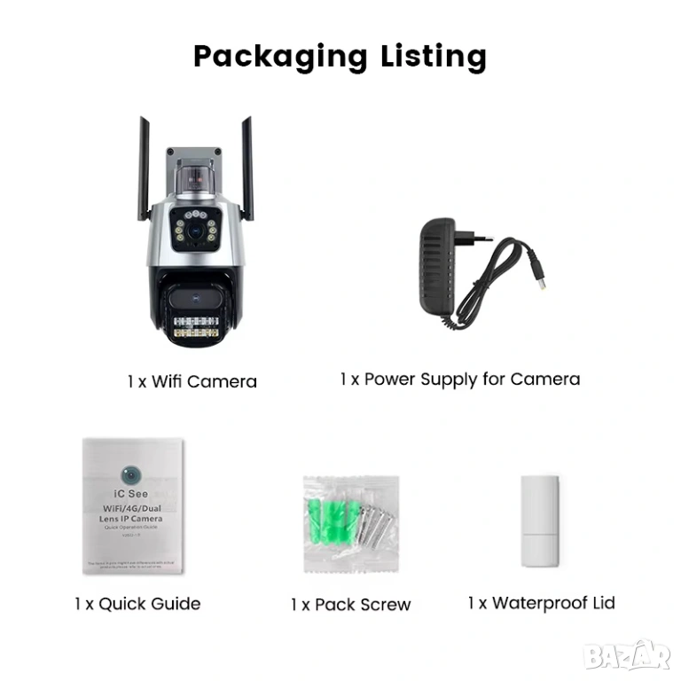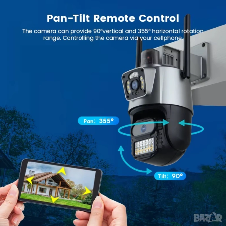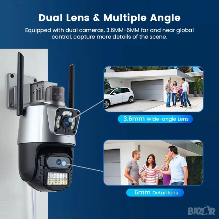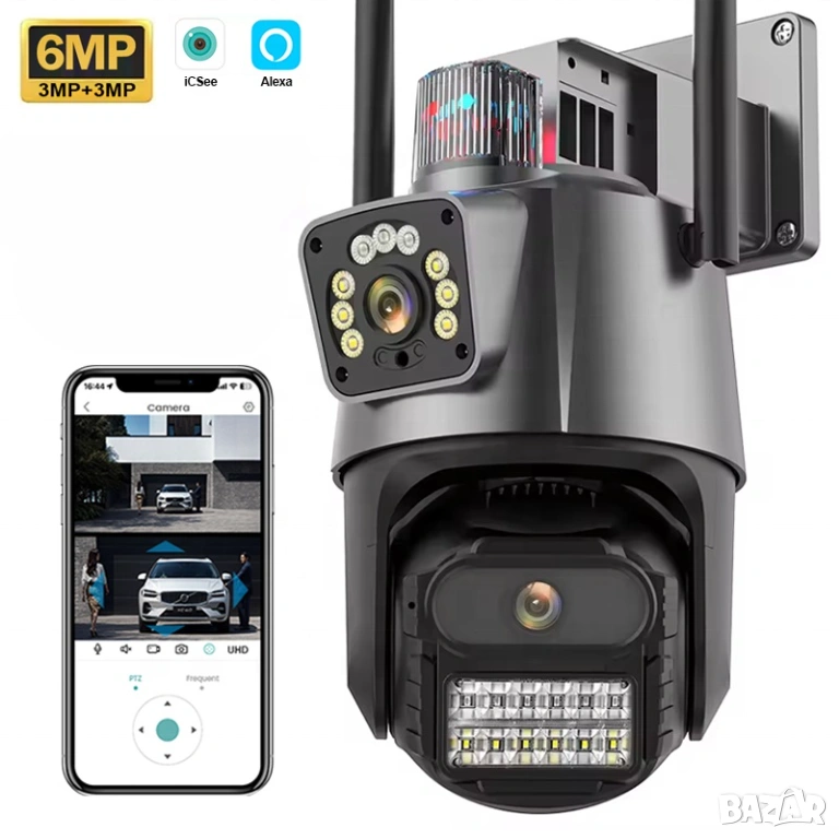 Двойна IP WiFi камера 6MP с 2 лещи, въртяща се, нощно виждане, ICSee