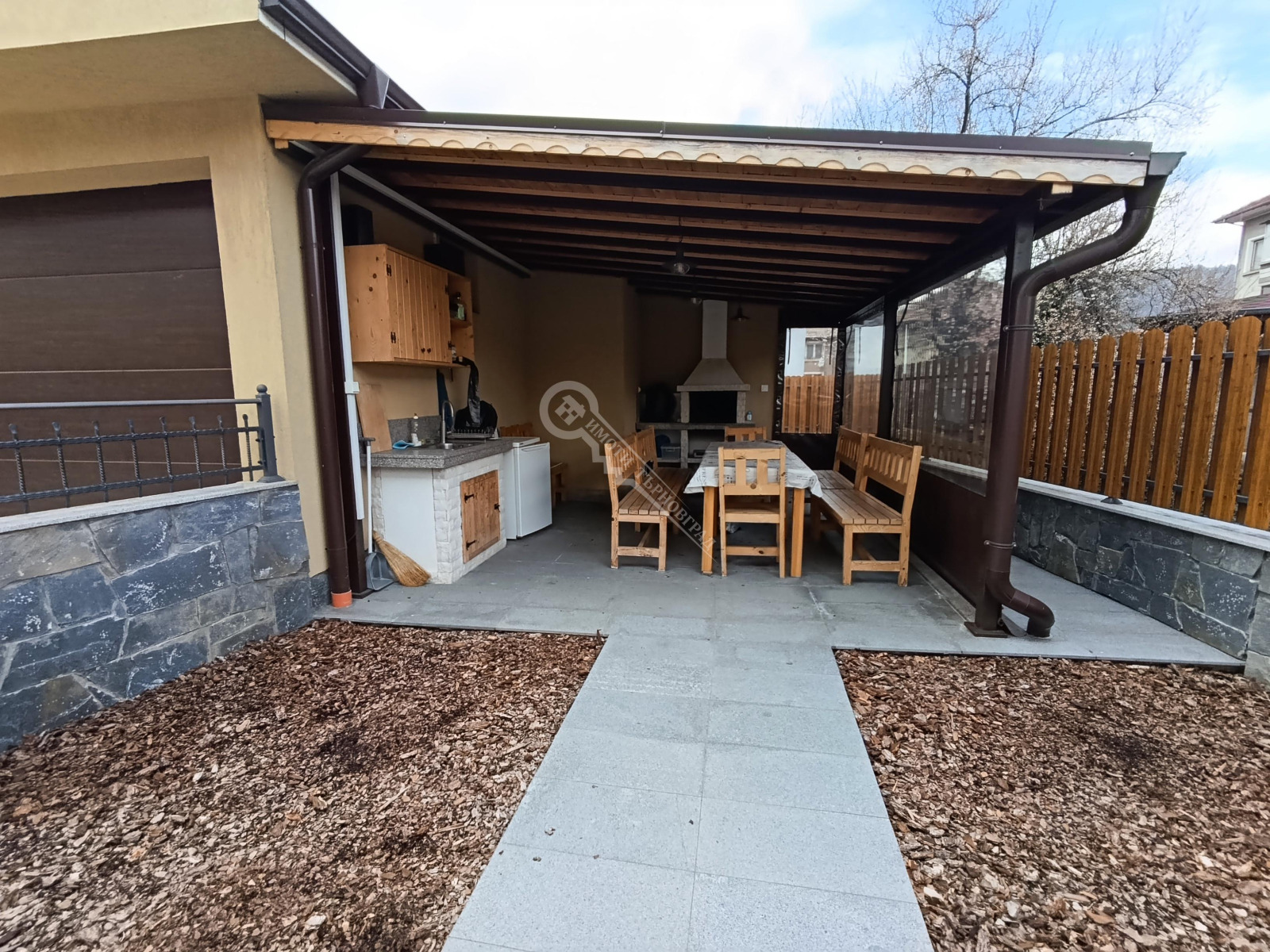 Имоти Търновград Ви предлагат напълно обзаведена и оборудвана двуетажна къща ново строителство, разположена в центъра на гр. Трявна. Предлаганият имот се състои от партерен етаж- котелно помещение, фитнес и сауна и джакузи. По вътрешни стълби се стига до първият етаж, където са разположени просторен хол с кухненски бокс с площ от 65 кв.м с излаз на остъклена тераса, баня с тоалетна, три спални/ всяка със собствена баня с тоалетна/, сервизно мокро помещение/ пералня и сушилня/ и коридор. По вътрешно стълбище се стига до вторият етаж, където са разположени дневна с кухненски бокс, три спални, две бани с тоалетни, тераса и коридор. Къщата се продава напълно обзаведена и оборудвана. Отоплението и охлаждането е решено чрез климатици във всички помещения и локално парно на пелети. За топлата вода са поставени два бойлера с общ обем от 400 литра, свързани към парното и соларни панели на покрива. Дворното място е с площ от 462 кв.м с разположените в него барбекю и двоен гараж с площ от 52 кв.м. с автоматична врата. Автоматизирани дворни врати за допълнително удобство. Къщата е подходяща както за живеене,така и за отдаване под наем. Заповядайте на оглед! Оферта 17685.