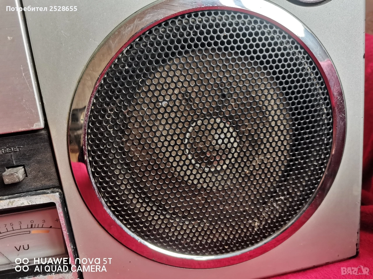 Работи на радио, говорителите са заминали, чува се звук от десния канал най вече от високочестотния, свири на касета, но набира лентата, като цяло за ремонт или части. Цената е съобразена.