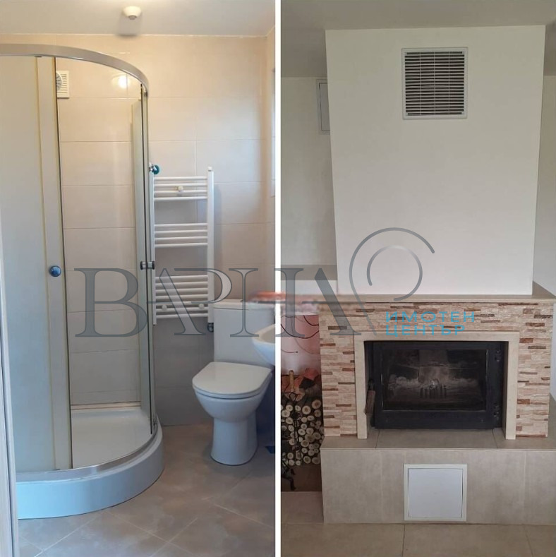 Отоплението е решено с камина с водна риза и радиатори, както и подово отопление в банята и дневната.