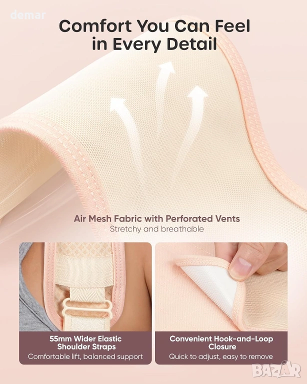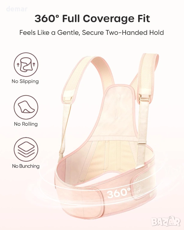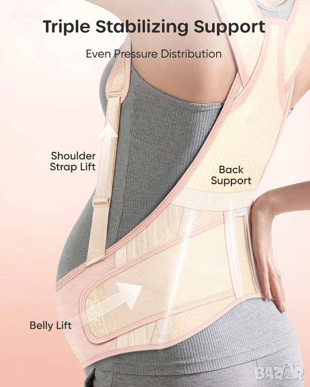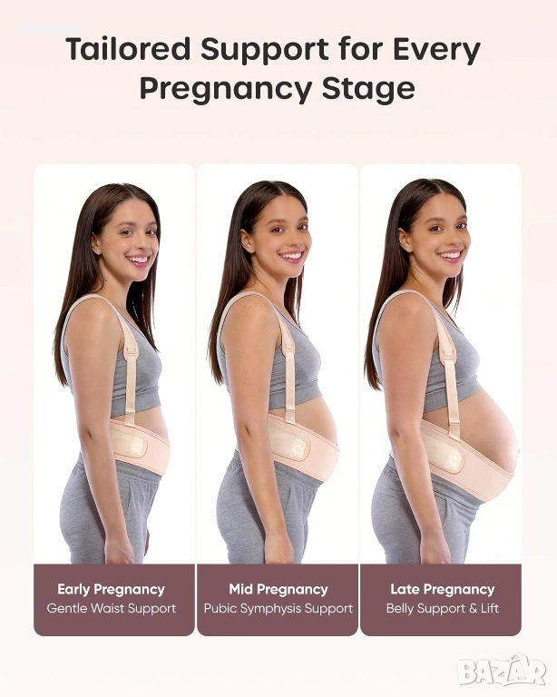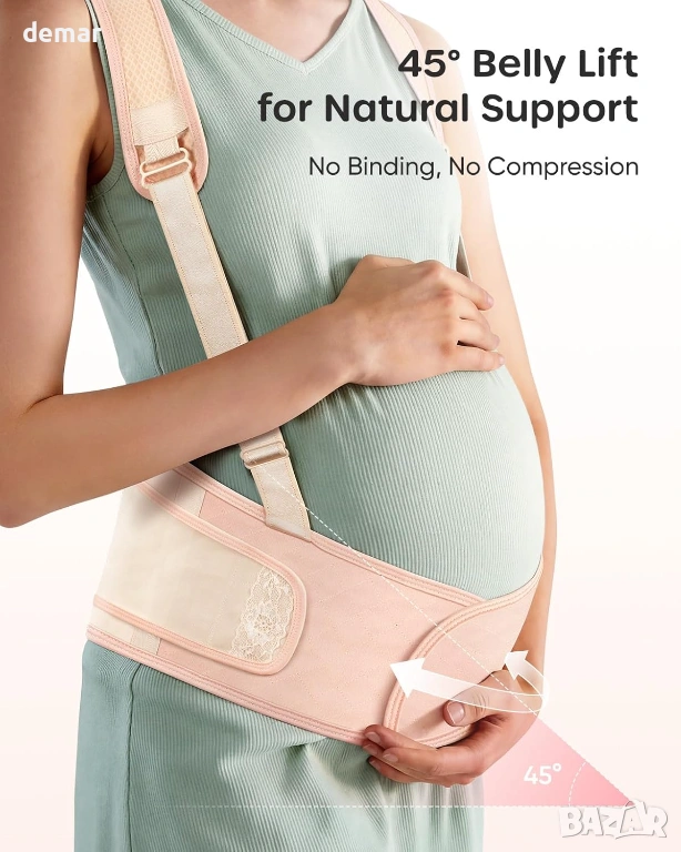 Този колан за бременни осигурява нежна опора за повдигане от 45° чрез вградени презрамки, като спомага за намаляване на провисването, като същевременно поддържа естествено усещане през целия ден. Обгръщащият му дизайн поддържа корема, талията и гърба, с вградени елементи за поддръжка на гърба, които подпомагат стойката и облекчават натиска по време на ежедневното движение. Леката, дишаща и еластична материя предлага меко, контуриращо тялото прилягане, което се адаптира удобно, докато седите, ходите или се навеждате, като остава сигурно на мястото си, без да се подхлъзвате или търкаляте. Проектиран за постоянен комфорт, той насърчава въздушния поток, за да ви държи хладни, като същевременно остава щадящ кожата, и разполага с регулируеми презрамки, за да осигури персонализирано прилягане, докато тялото ви се променя по време на бременността.