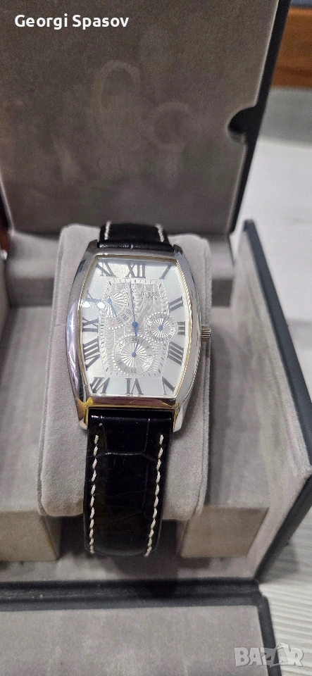 Кварцов отлично запазен,оригинален и кутия,естествена кожа каишка ,много стил и много лек за ръката.