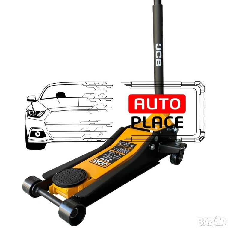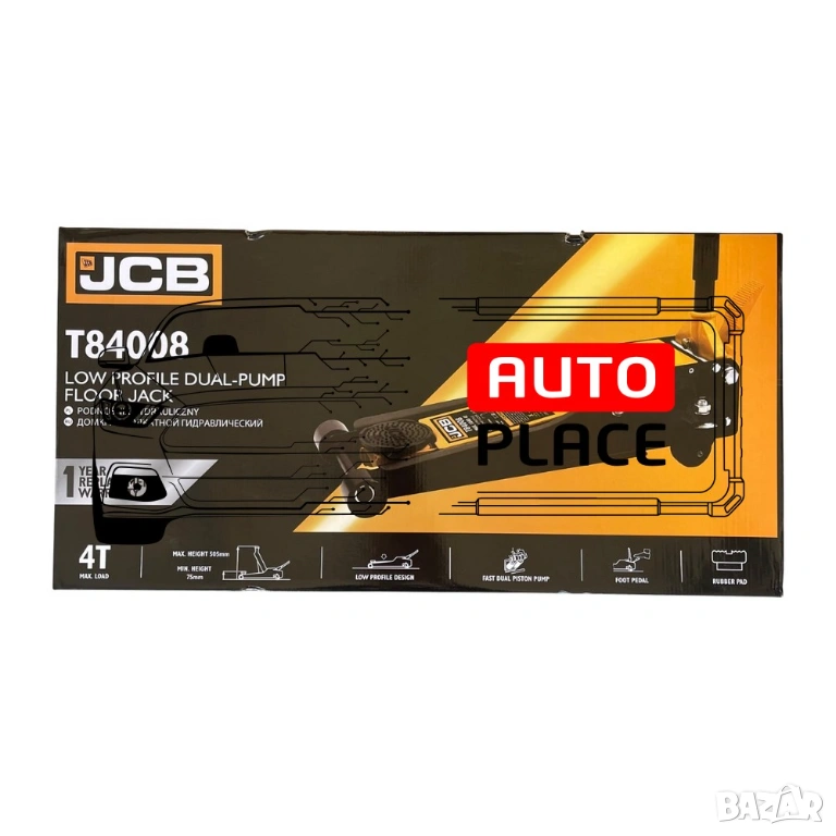 Професионален сервизен крик на марката JCB с товароподемност 4 тона, с две помпи и усилена конструкция. Крикът е снабден с педал за бързо повдигане.