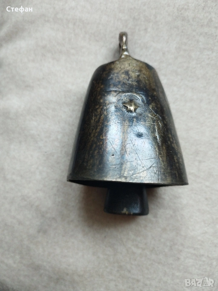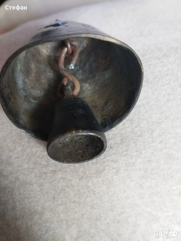 Звънеца е с размерите 6,8см. от ръб до ръб.Няма нито спукано нито лепено.