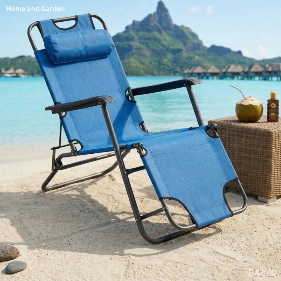 Сгъваем син шезлонг с възглавница - комфорт и релакс