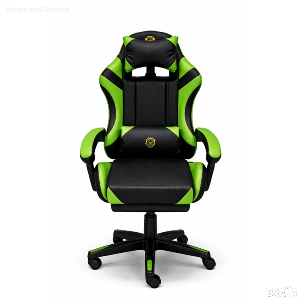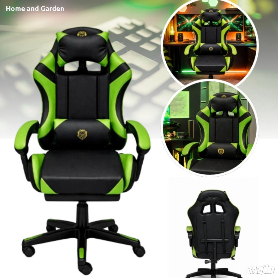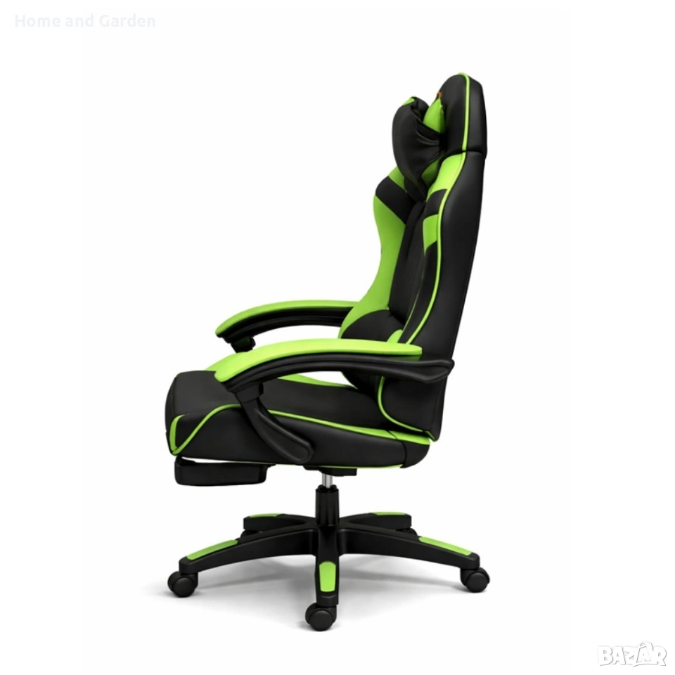 Ергономичен геймърски стол с масажна функция и поставка за крака, PU екокожа
