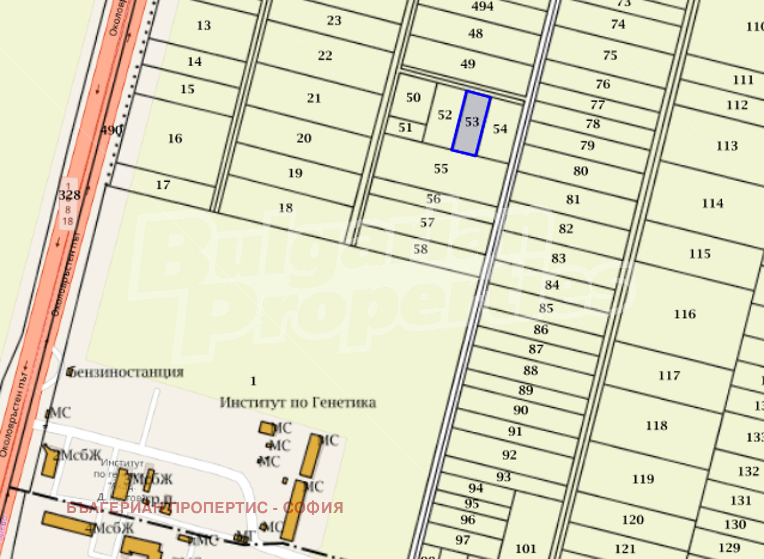 Поземленият имот е равен и достъпен по асфалтов път, в съседство с ток и вода. В близост се намират мотел Църна маца, детелината на околовръстен път и Цариградско шосе и Институт по генетика Академик Дончо Костов.