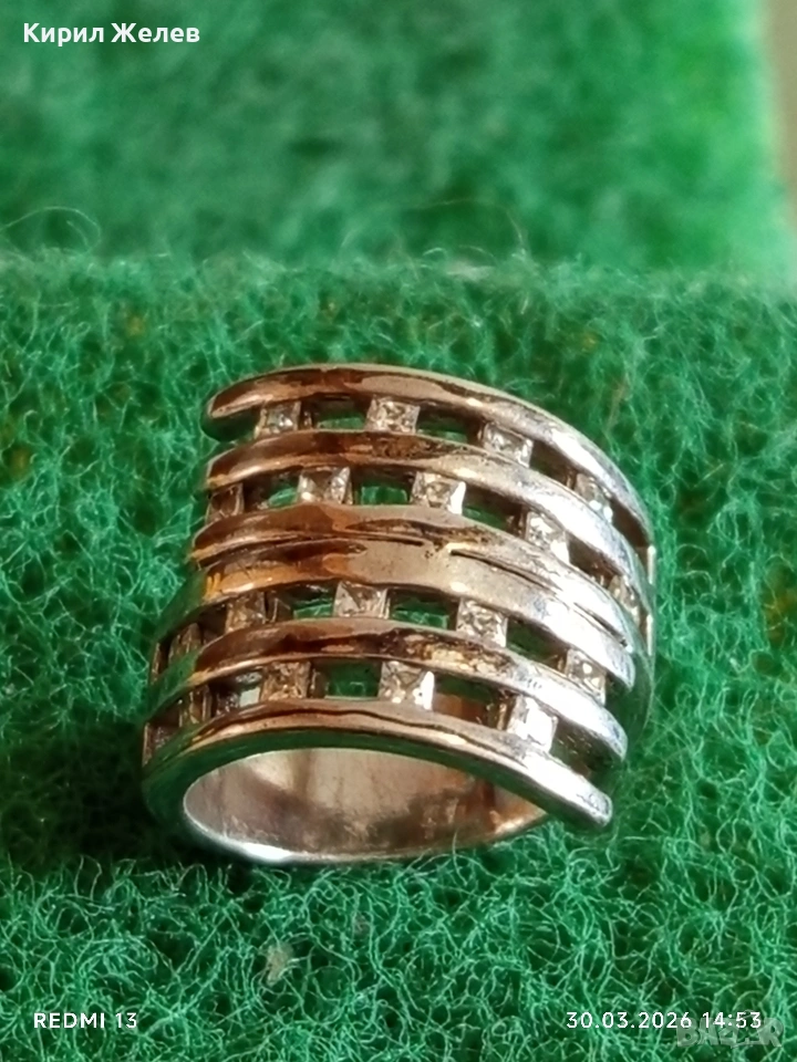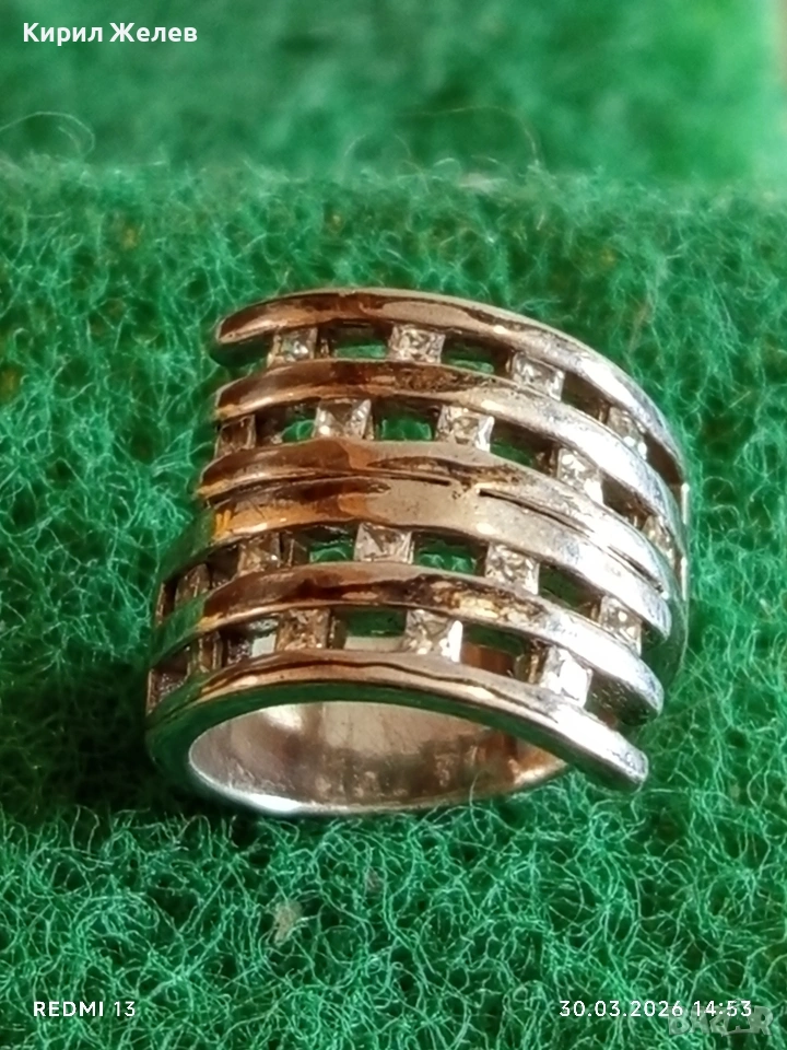 Авторски сребърен пръстен Арт бижу с инкрустирани ПЛАНИНСКИ КРИСТАЛ 54206
