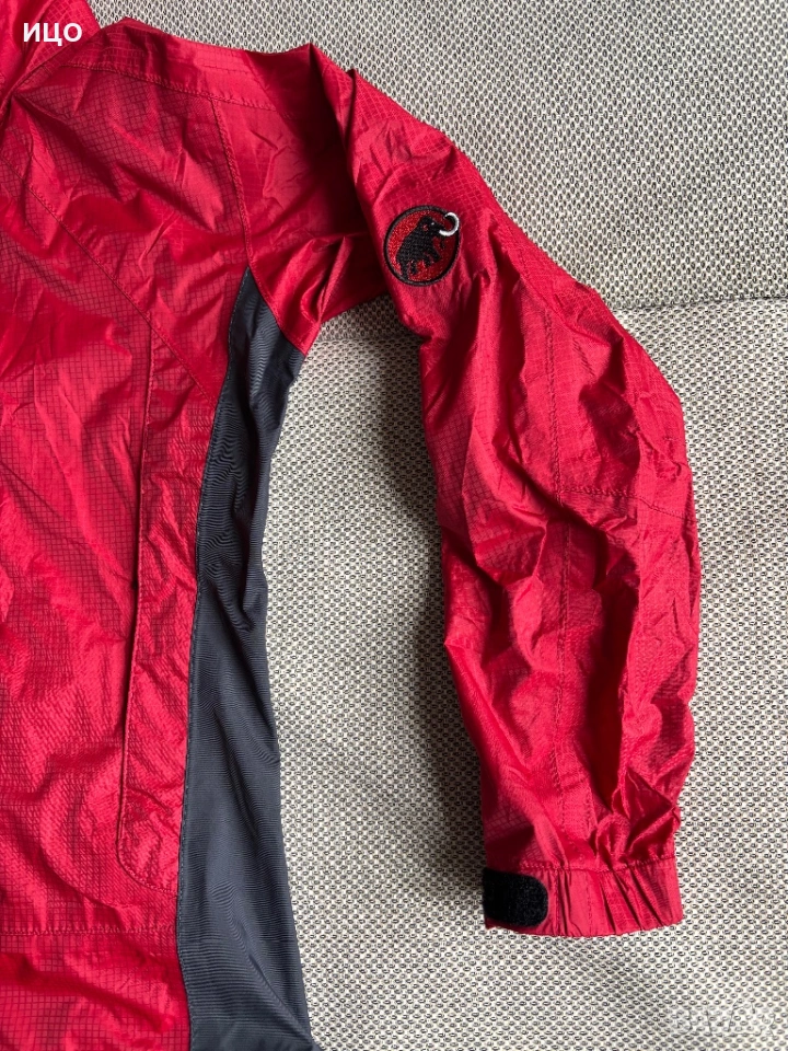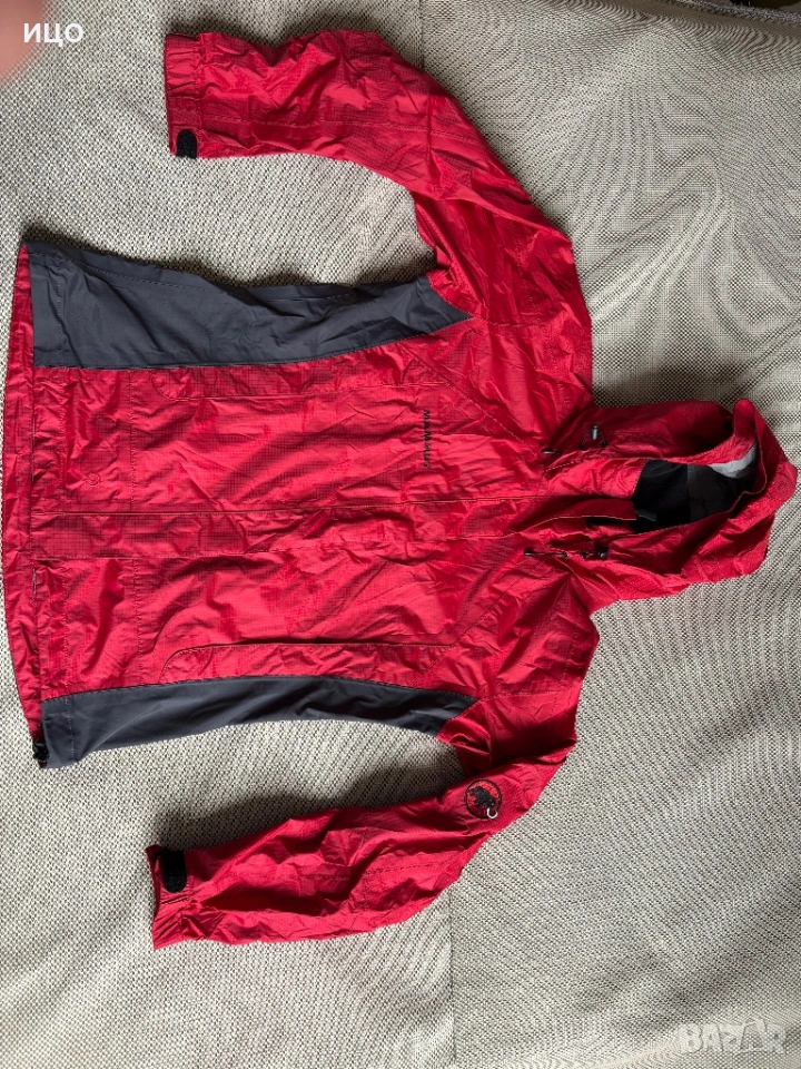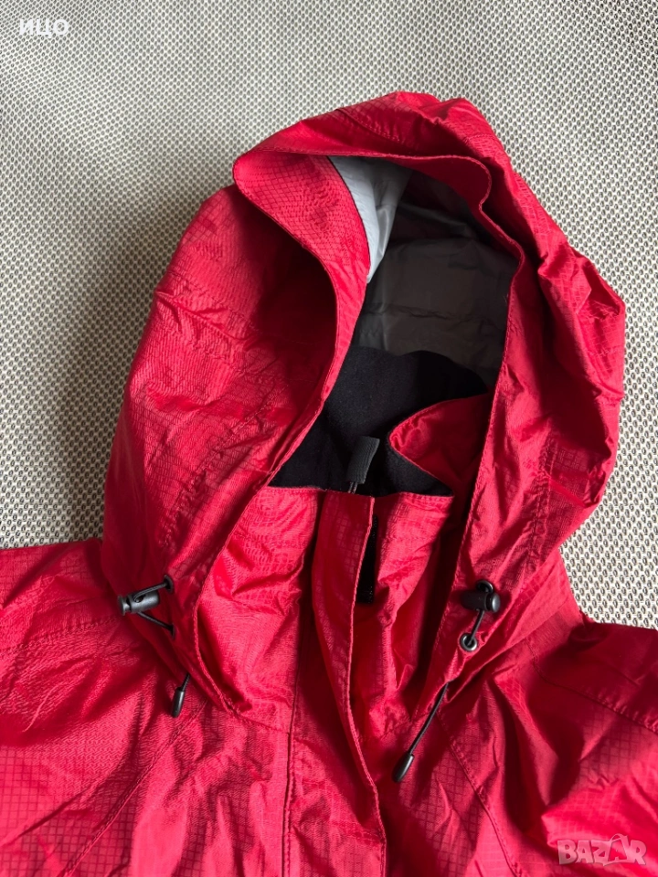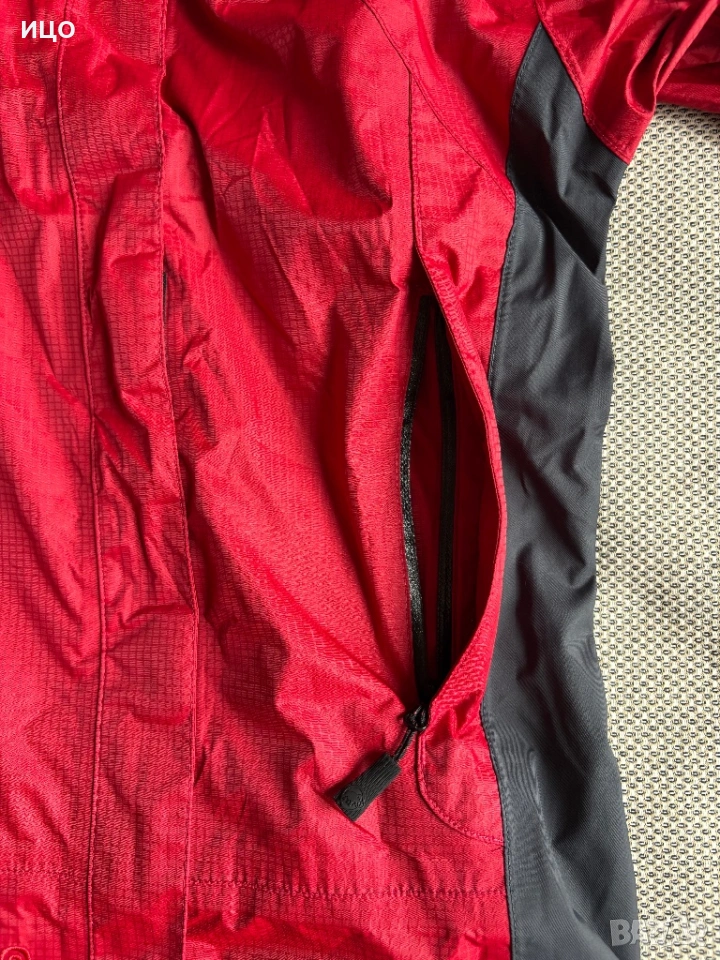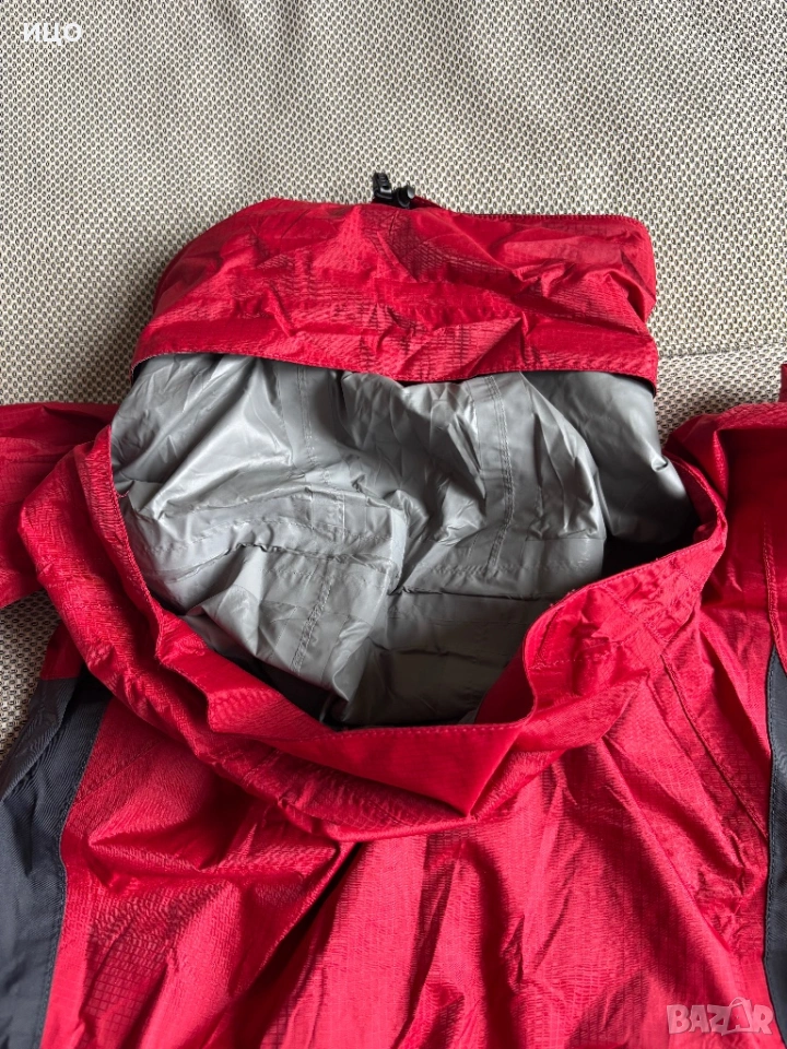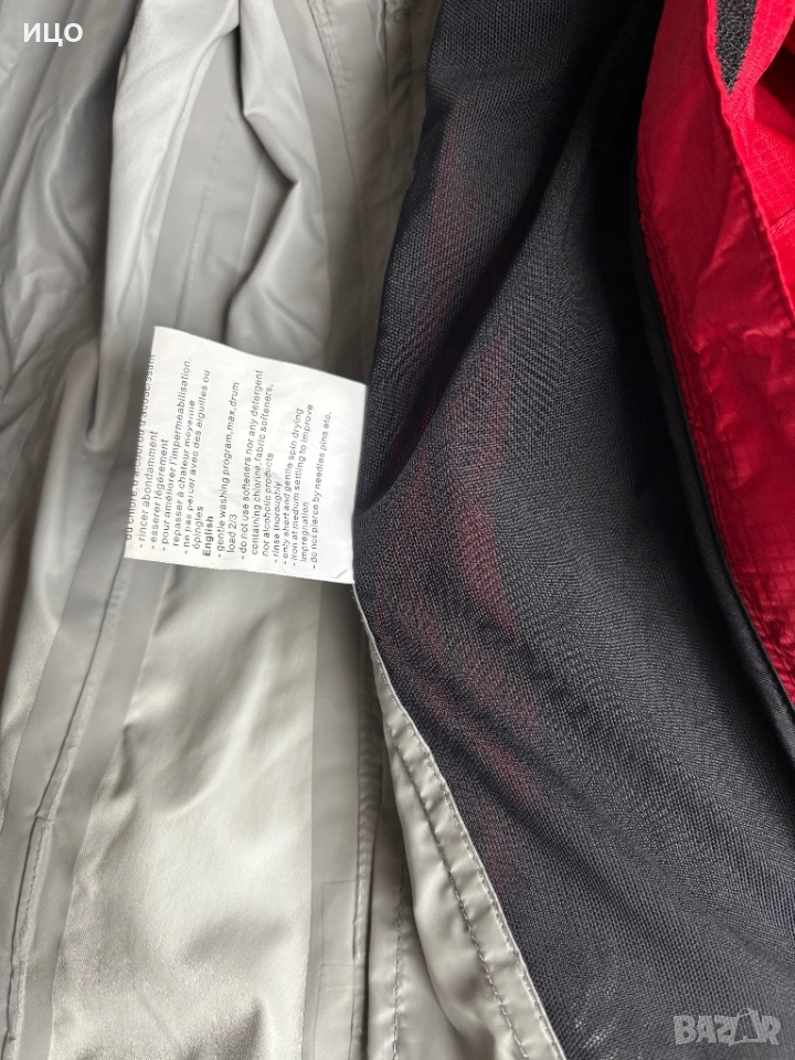 Отлично състояние на тънката ветровка. Забележката е под яката от вътрешния край един от шевовете на места се е разлепил частично.