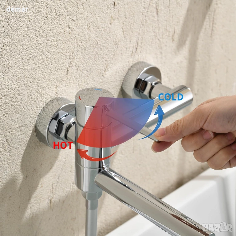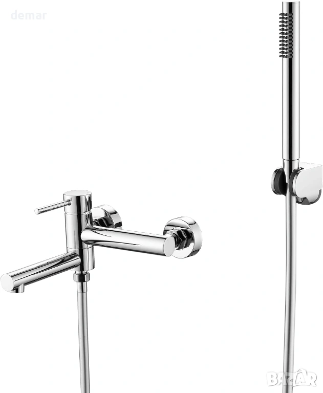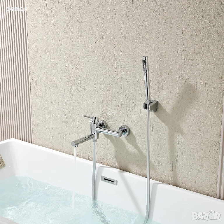 Минималистичен смесител за душ/вана с едноръкохватков дизайн, позволяващ лесно превключване между ръчен душ и чучур за вана, като същевременно прецизно контролира температурата и дебита на водата. Изработен с издръжлив керамичен патрон, тестван до 500 000 цикъла, за да осигури плавна работа без течове или капки. Изработен от висококачествен масивен месинг за дълготрайна устойчивост на корозия, влага и екстремни студове. С хромирано галванично покритие, което е устойчиво на водни петна и запазва блясъка си с лесно почистване. Включва аератор с въздушно впръскване за мек, безпръсков и пестящ вода поток, заедно с комплект ръчен душ със самопочистващи се силиконови дюзи и гъвкав 150 см маркуч за удобна и многофункционална употреба.