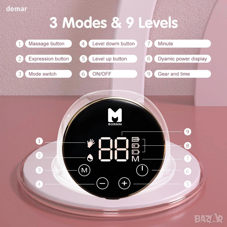 MOMAINI Носима електрическа помпа за кърма с 3 режима и 9 нива на засмукване