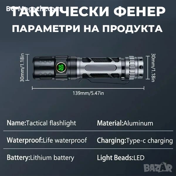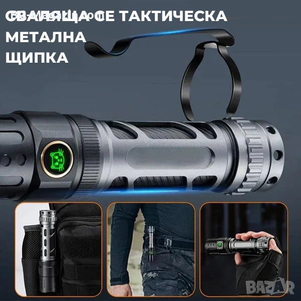 ⚔️ Тактическа издръжливост и MOLLE съвместимост: Изработен от високоякостен авиационен алуминий, този Мощен ръчен фенер YEMAO е устойчив на удари от 1.5 метра и пръски вода (IPX4). Стоманената щипка позволява сигурно закрепване към колани, раници и тактически системи.