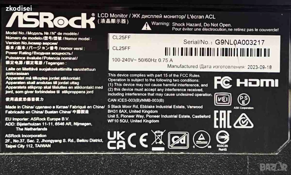 Монитор ASRock CL25FF 25 Инча, снимка 1 - Монитори - 54027585 Монитор ASRock CL25FF 25 Инча, снимка 2 - Монитори - 54027585 1/2
