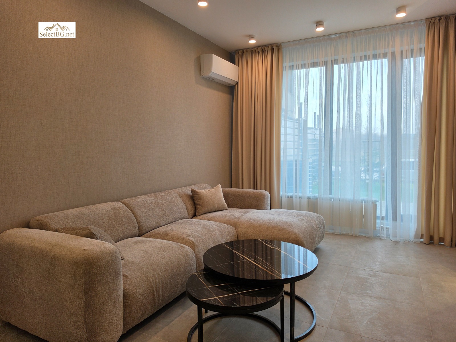 Всичко в апартамента е чисто ново , мебелите са по поръчка, санитарията и електроуредите са висок клас. Входната врата е солидна блиндирана. През входното антре напред по коридора има две самостоятелни спални , семейна баня с тоалетна и просторна дневна с кухня , като основната спалня е със собствена ( втора в имота ) баня с тоалетна.Инверторни климатици в спалните и дневната , радиатори за централно отопление , предвидено в комплекса. От двете спални и от дневната се излиза на собствен двор , което прави имота отличен избор за семейства с малки деца и домашни любимци. Прилежащата градинка е с гледка към парк Лаута - озеленена и обособена за индивидуално ползване, има възможност за изграждане на тента , пергола или покрита лятна градина с BBQ .