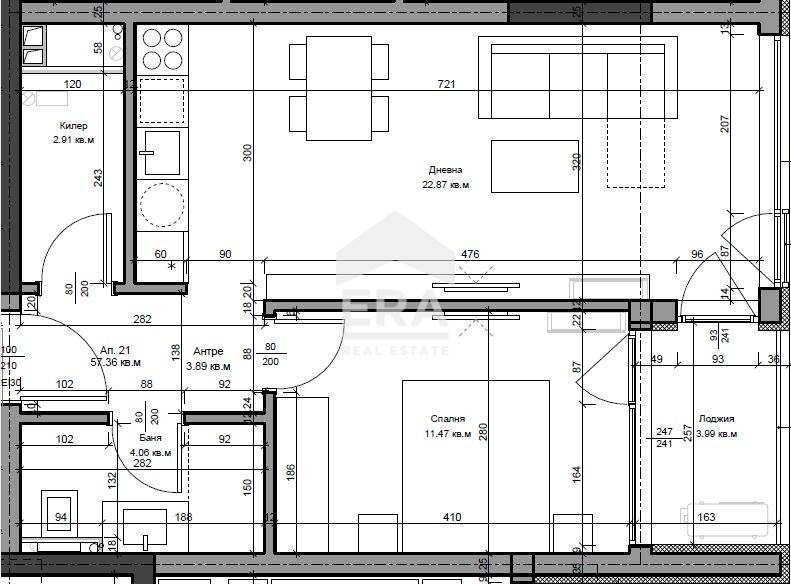 ЕКСКЛУЗИВНО! ЕРА Варна Тренд предлага под наем двустаен, чисто нов и обзаведен апартамент в нова сграда на ул. Панайот Волов 42, в близост до Катедралата и 1 РПУ. Имотът е със застроена площ 57,36 кв.м (66,38 кв.м с общите части), разположен на втори етаж от общо 6 етажа. Състои се от дневна с кухненски бокс (22,87 кв.м), спалня (11,47 кв.м), обща за двете стаи лоджия (3,99 кв.м), коридор (3,89 кв.м), килер/перално помещение (2,91 кв.м) и баня с тоалетна (4,06 кв.м). Изложението е изток.