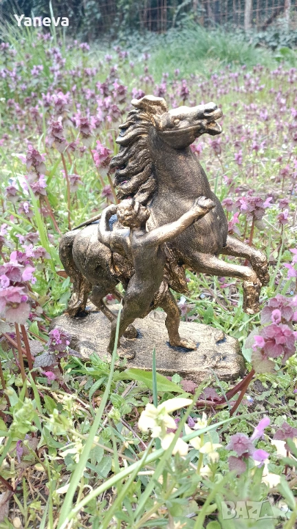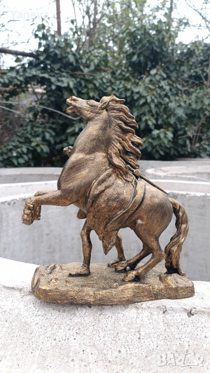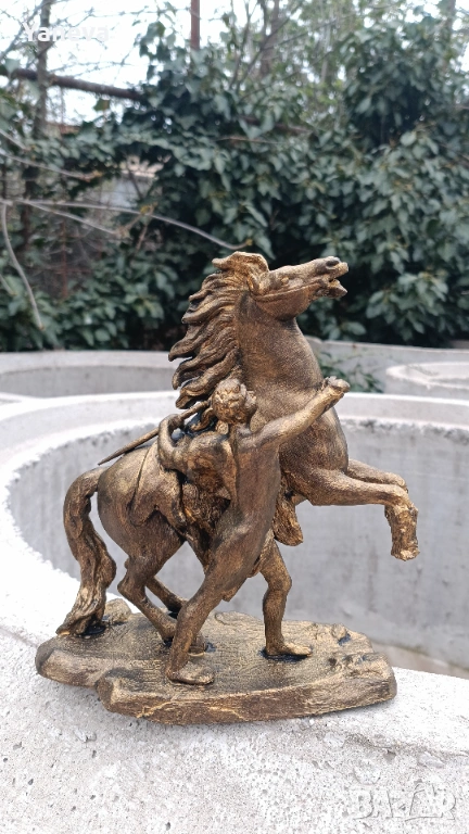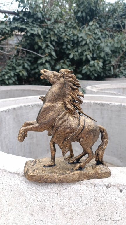 Метална , френска статуетка „Конете от Марли“ от скулптора Гийом Кусту. Размер 20 см. Цена 80 €.