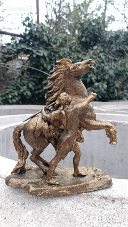 Метална , френска статуетка „Конете от Марли“ от скулптора Гийом Кусту.