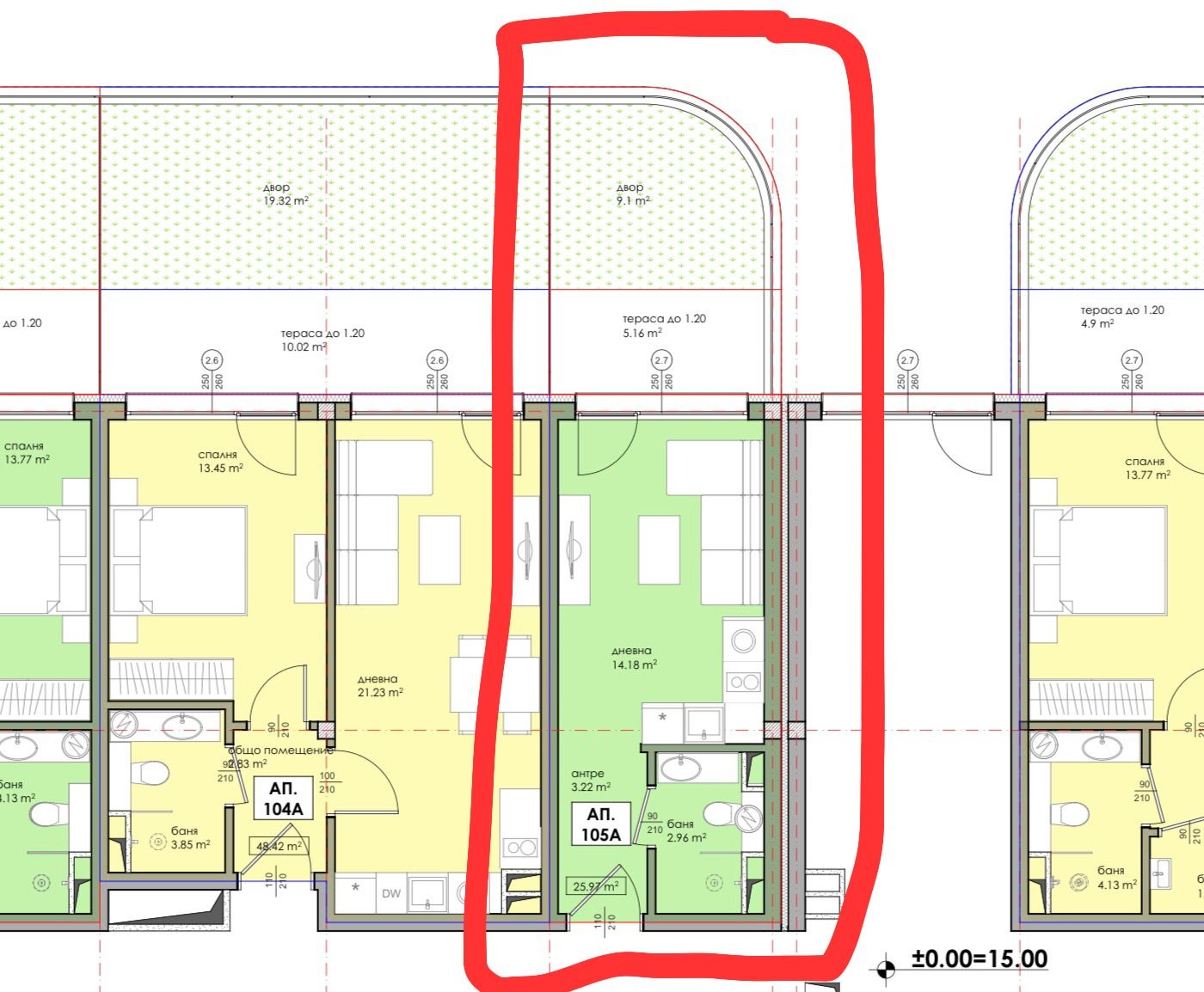 Апартаментът се състои от дневна с кухненски бокс, баня с тоалетна и тераса.