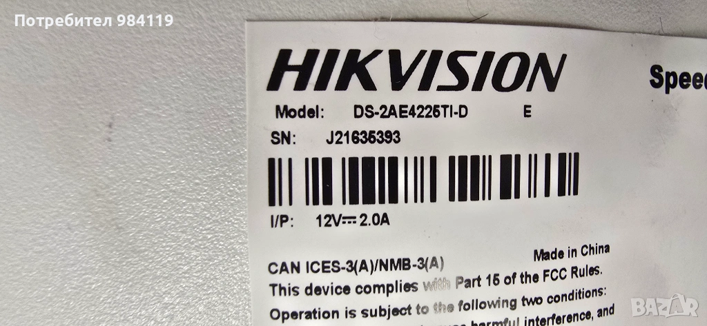 PTZ Камера за видеоналюдение Hikvision DS-2AE4225TI-D(E) в комплект със стойка за стена.