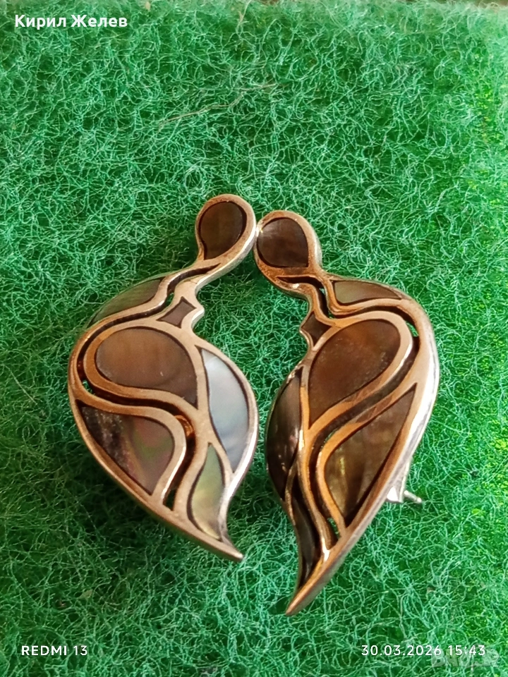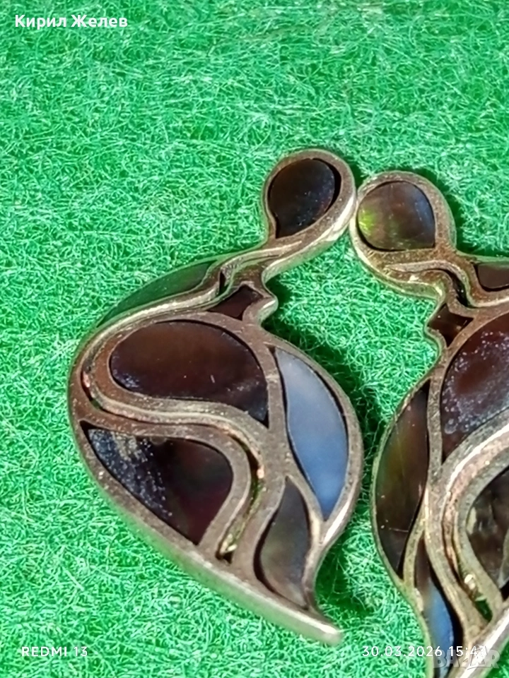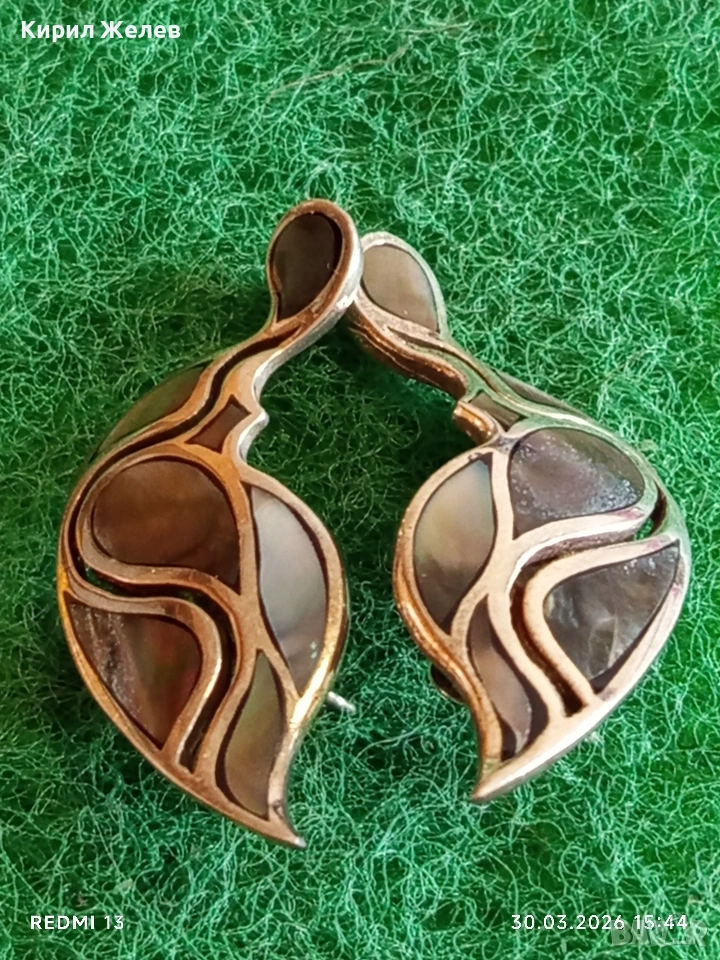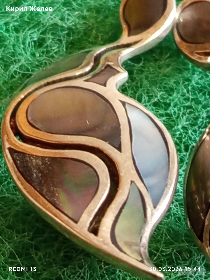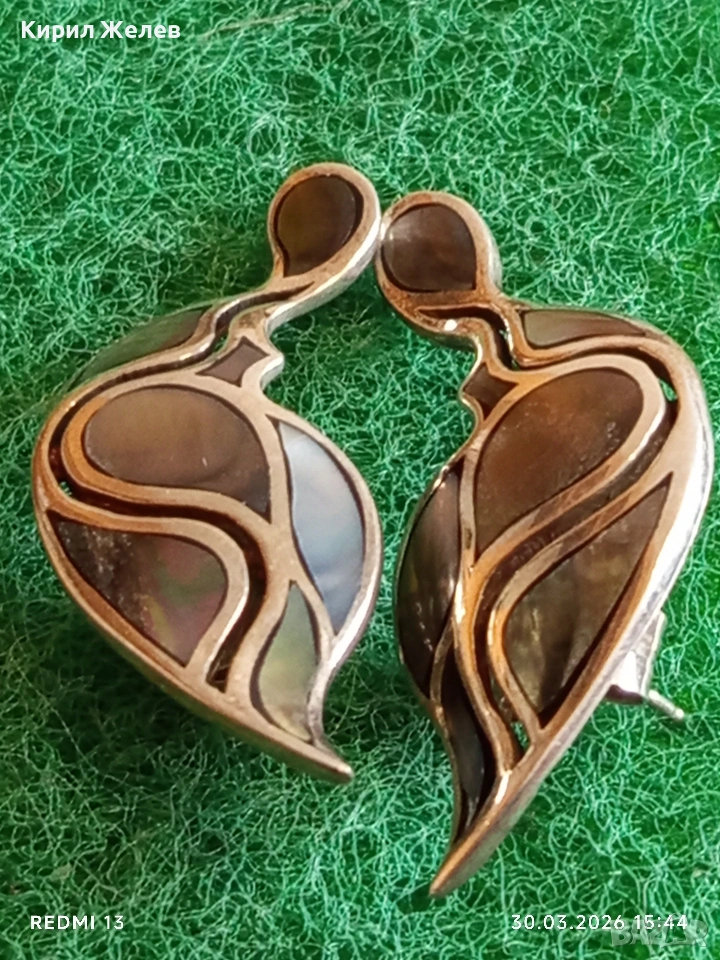Артистични винтидж стил сребърни обеци с КРАЛСКИ СЕДЕФ ювелирна изработка 52894
