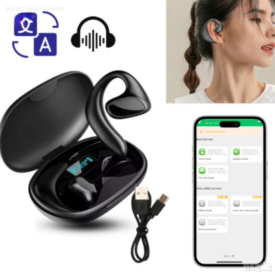 Безжични слушалки с AI превод 2 в 1 — превод в реално време