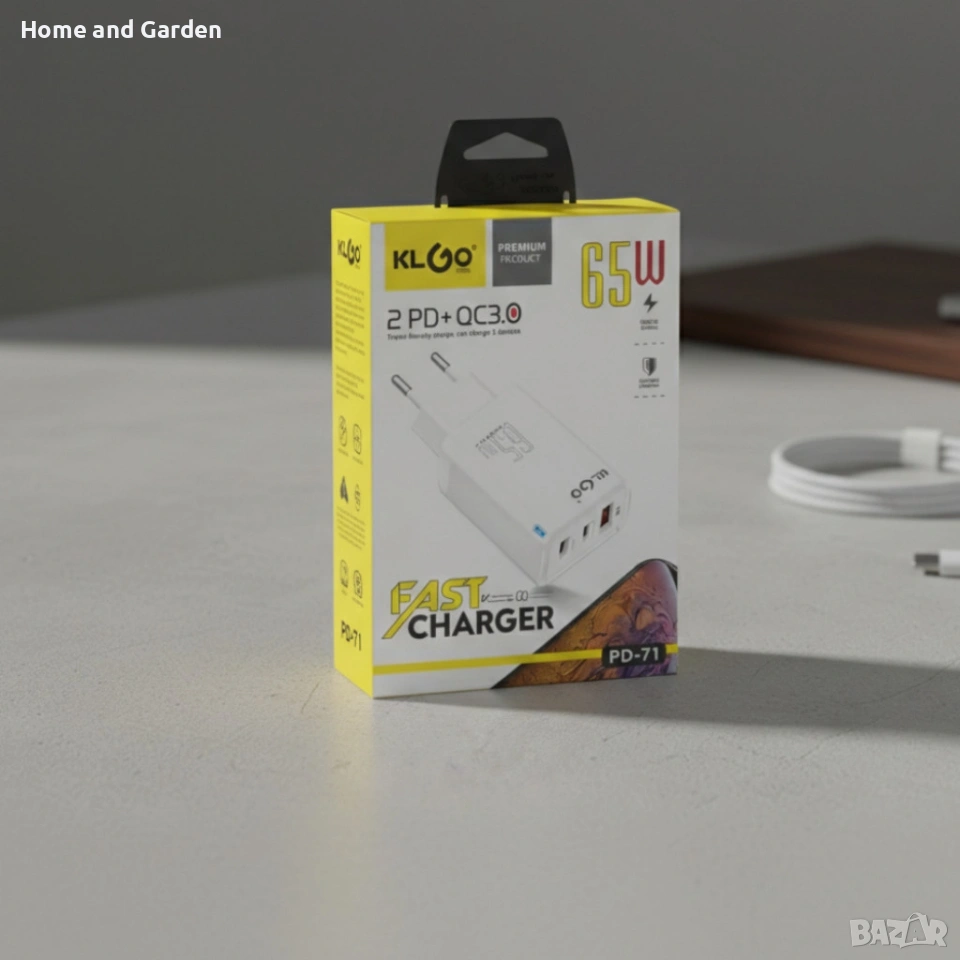 Адаптер - Зарядно устройство KL GO PD71 65W, бързо зареждане, 5 порта