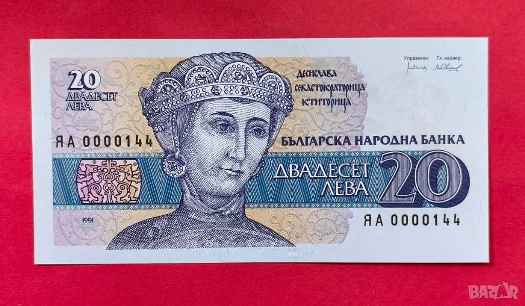 20 лева 1991 година - Заместваща серия ЯА с малък номер 0000144 → Обява 54028165