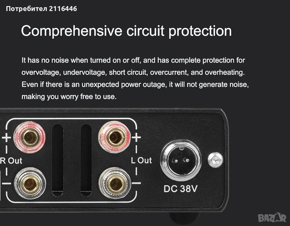 Усилвателят е висококачествен Class D с балансирани TRS и RCA входове, предлага кристално чист звук и мощност, подходяща за малки до средни Hi‑Fi системи или desktop setups.