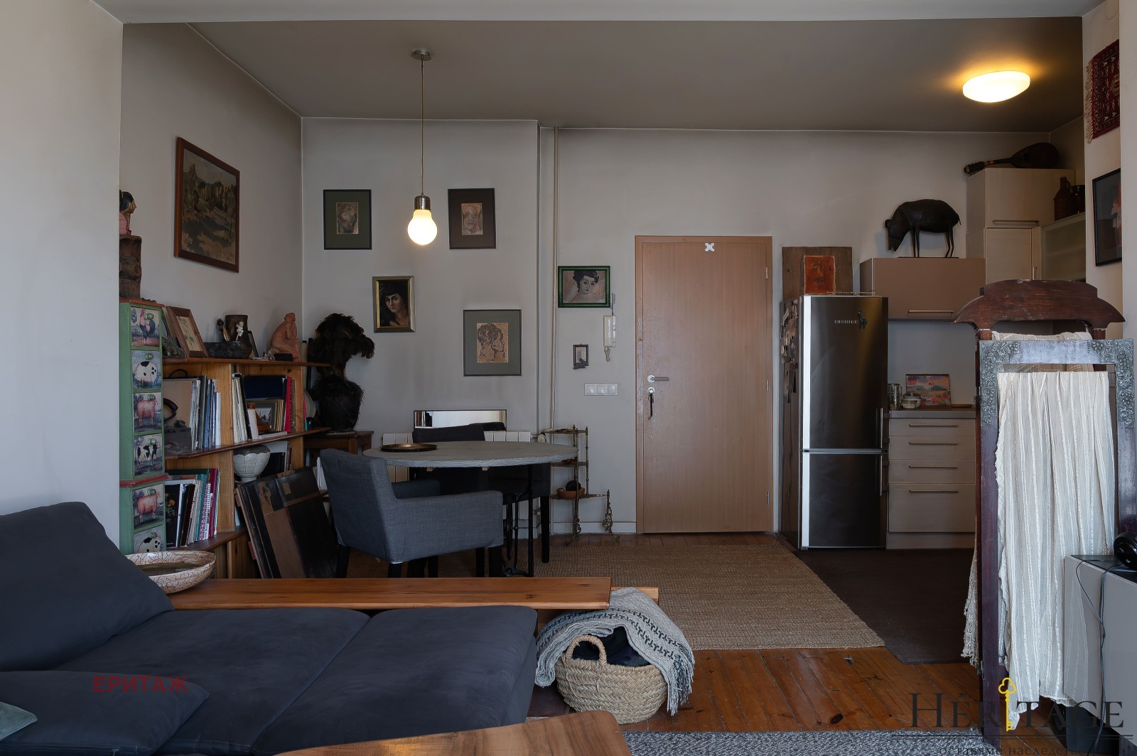 Апартаментът е разположен на последен 4-ти жилищен етаж, под тавански помещения, в тухлена кооперация от 50-те години на улица Черковна и Оборище .