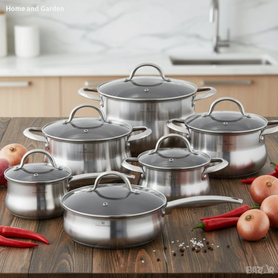 Комплект EDENBERG EB-2420M от 12части - неръждаема стомана с многослойно дъно за бързо и равномерно готвенеМатериал: висококачествена неръждаема стомана