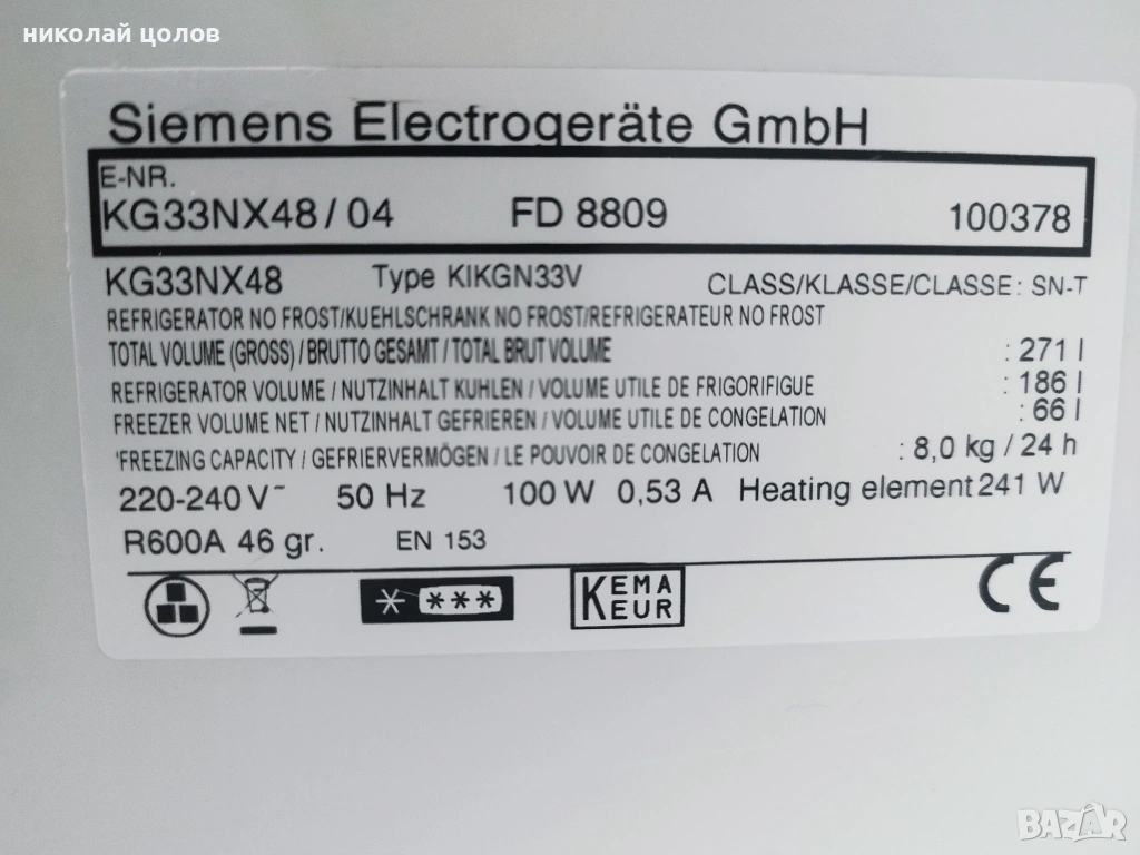 Хладилник с фризер Siemens , снимка 1 - Хладилници - 54028821 Хладилник с фризер Siemens , снимка 2 - Хладилници - 54028821 Хладилник с фризер Siemens , снимка 3 - Хладилници - 54028821 Хладилник с фризер Siemens , снимка 4 - Хладилници - 54028821 1/4