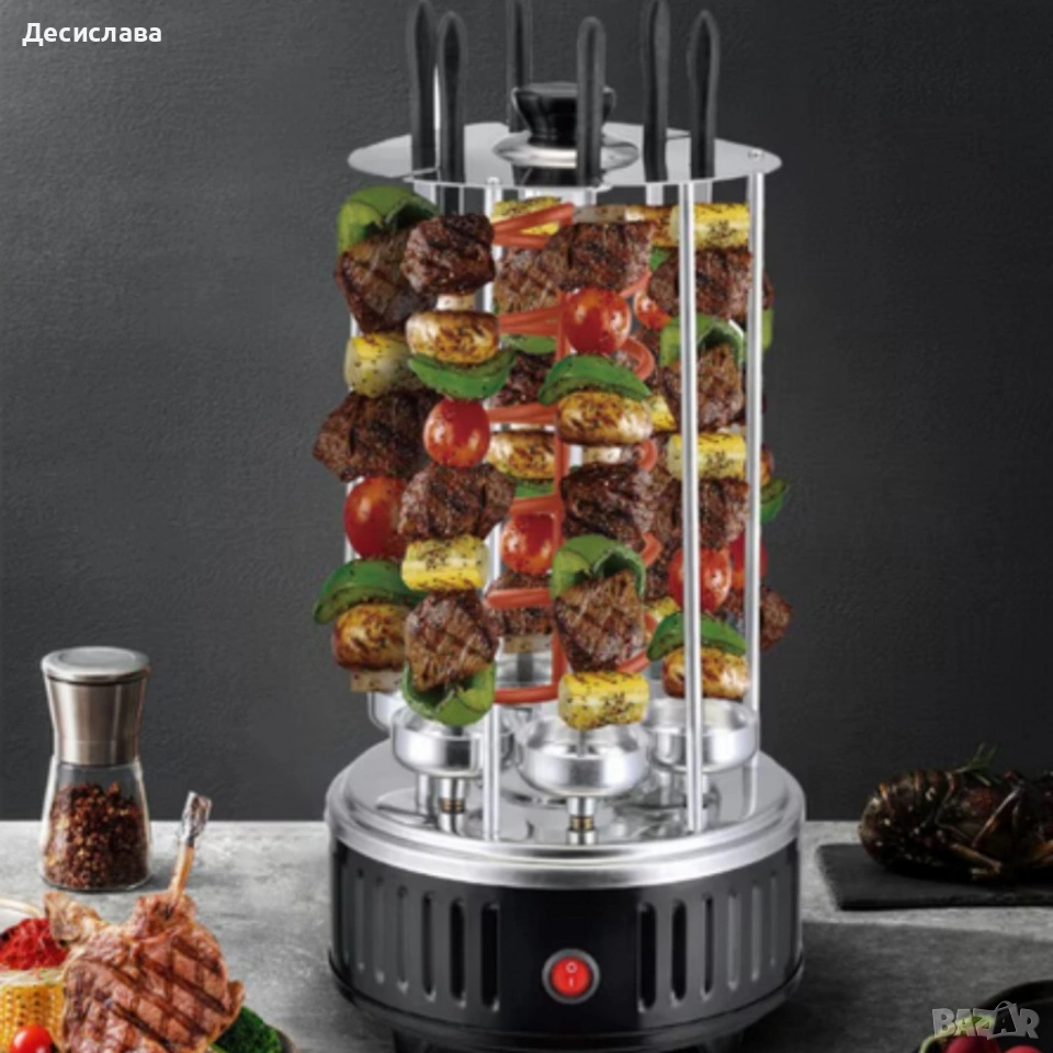 Електрическа скара за барбекю с 6 вертикални шиша – 1000W, автоматично въртене, без дим