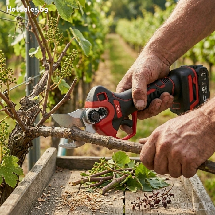 Ръчните ножици изискват сила, оставят неравни срезове и натоварват китките при продължителна работа. При повече дървета или лозя това се превръща в истинско изпитание – бавно, тежко и изморително.