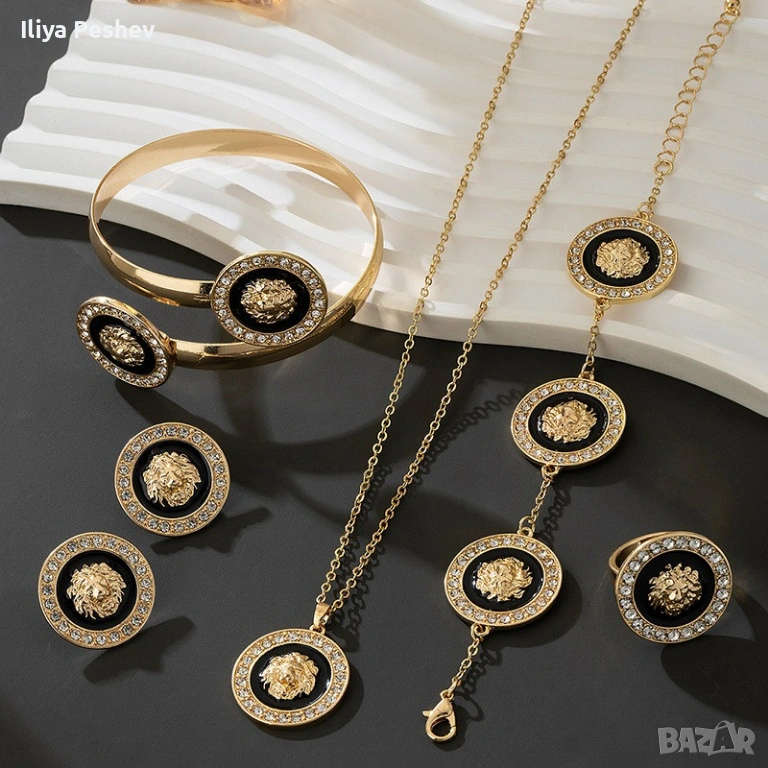 Комплект 5 в 1 колие, 2 гривни, обеци и пръстен „Златна елегантност“ → Обява 54029232