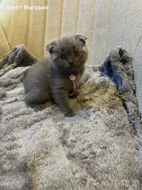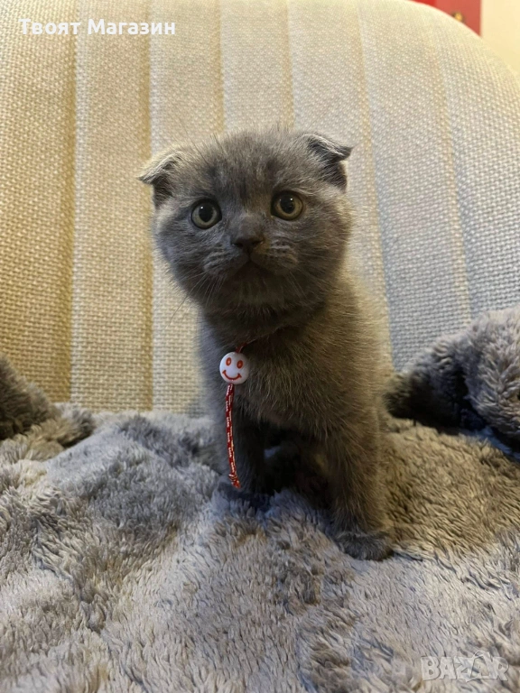 Произход: Майка – правоуха британка, Баща – шотландски клепоух.